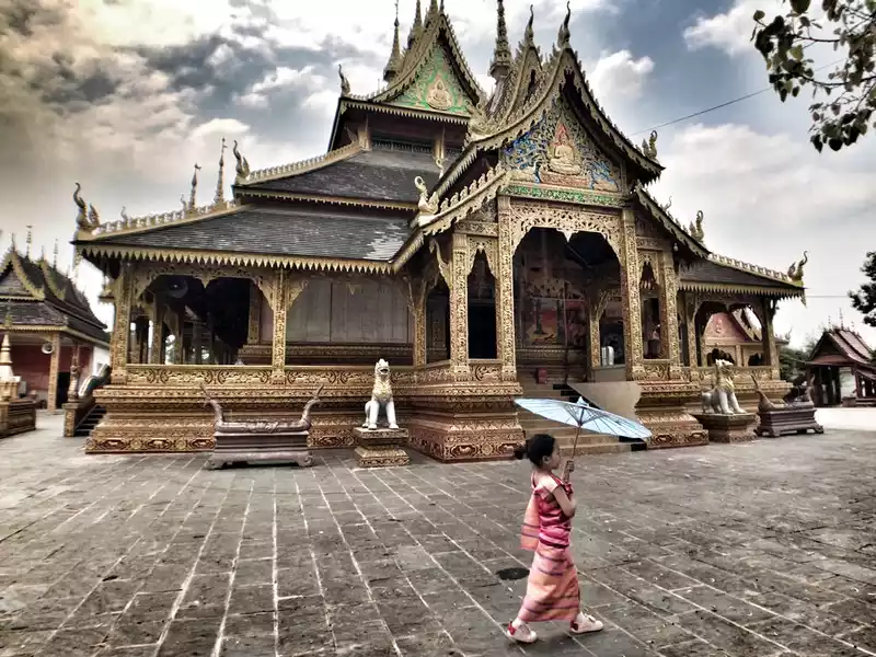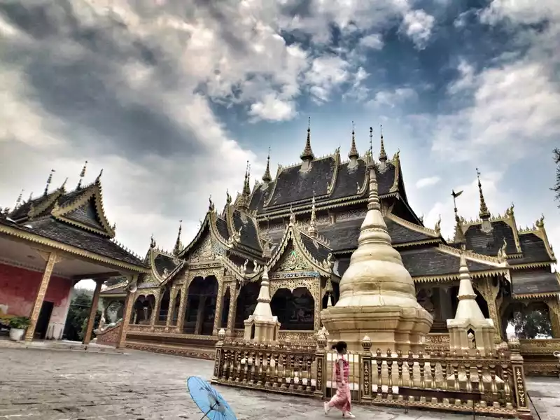 The Jingzhen Octagonal Pavilion is located in Jingzhen Village, Menghai County, Banna. It is said to be a Dai Buddhist pavilion, modeled after the golden-threaded hat worn by Sakyamuni, blending Southeast Asian and ancient Chinese architectural styles.
