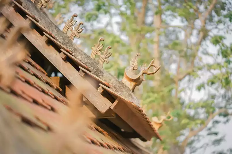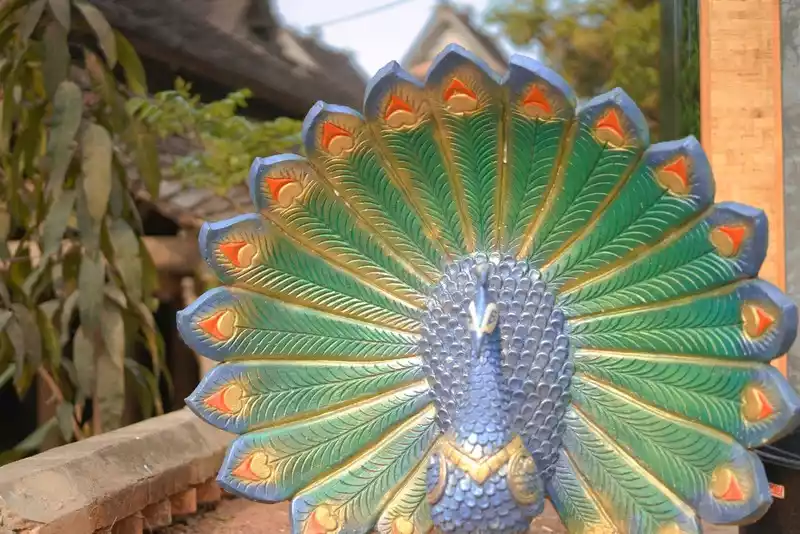 The peacock on the eaves is a symbol of auspiciousness, happiness, beauty and kindness in the hearts of the Dai people.