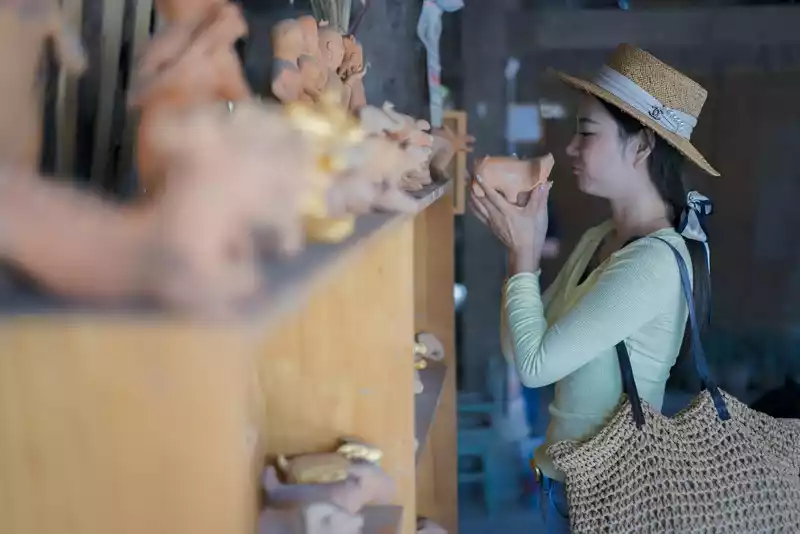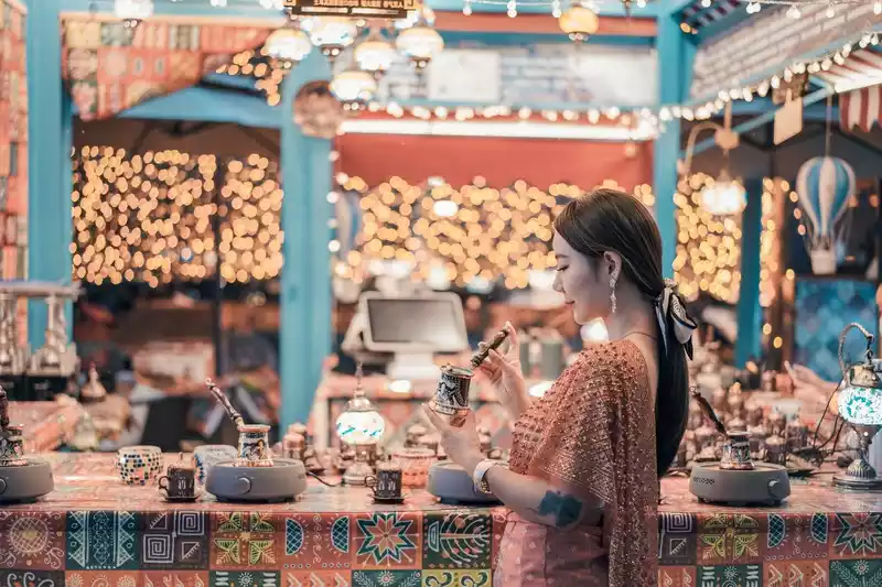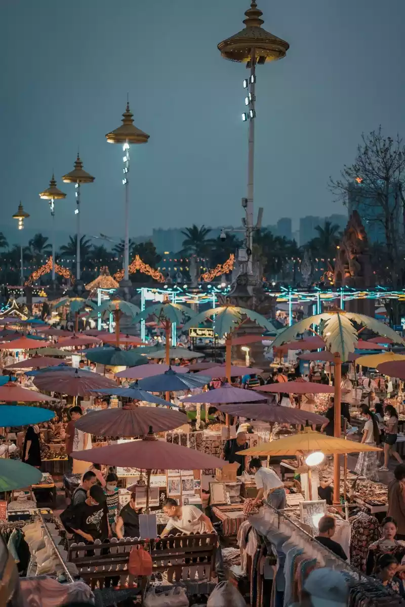 The first thing you feel when you come to Gaozhuang is the obvious exotic customs, but these exotic customs are not just a single one. They are not just a collection of objects, but also a collection and blend of cultures. Creative stalls from China , Thailand , Laos , Vietnam ;