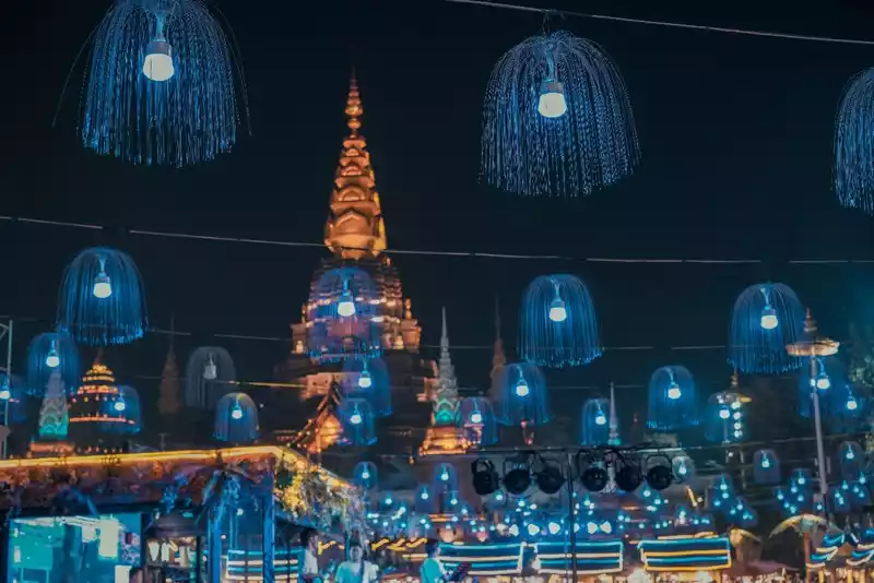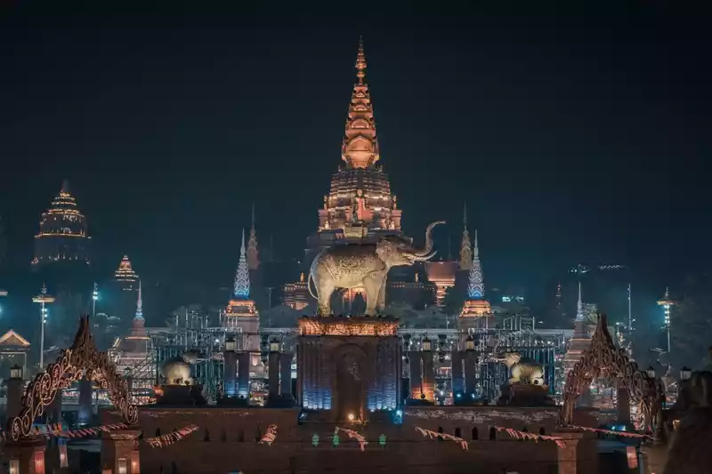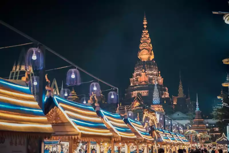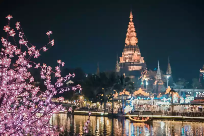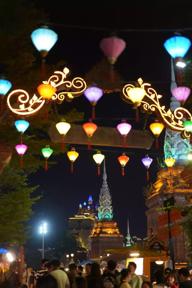 The same lights, two styles, in the sky water , complement each other, making Gaozhuang Xishuangjing the business card of Xishuangbanna.