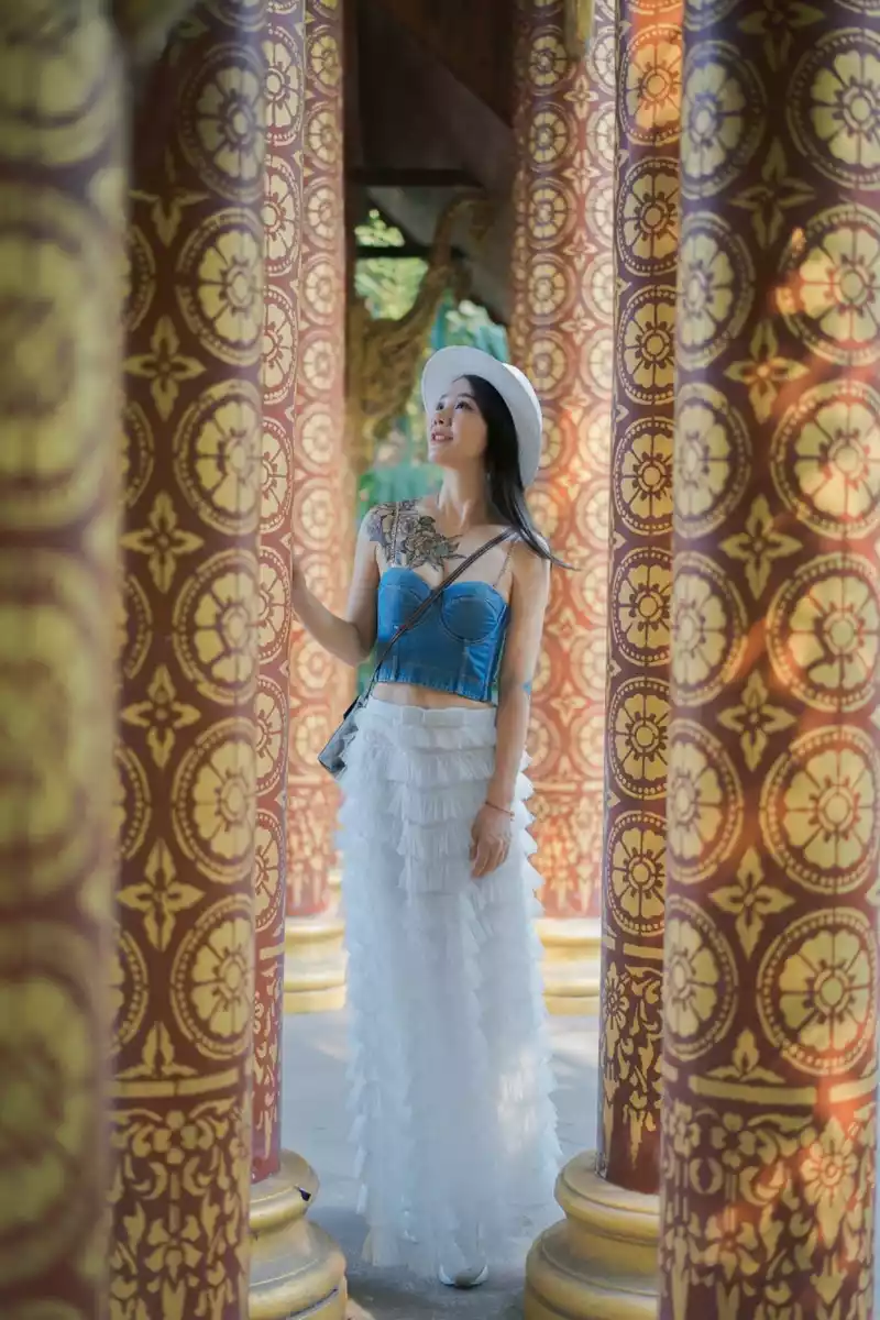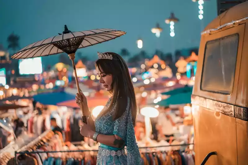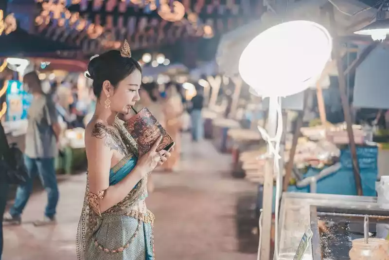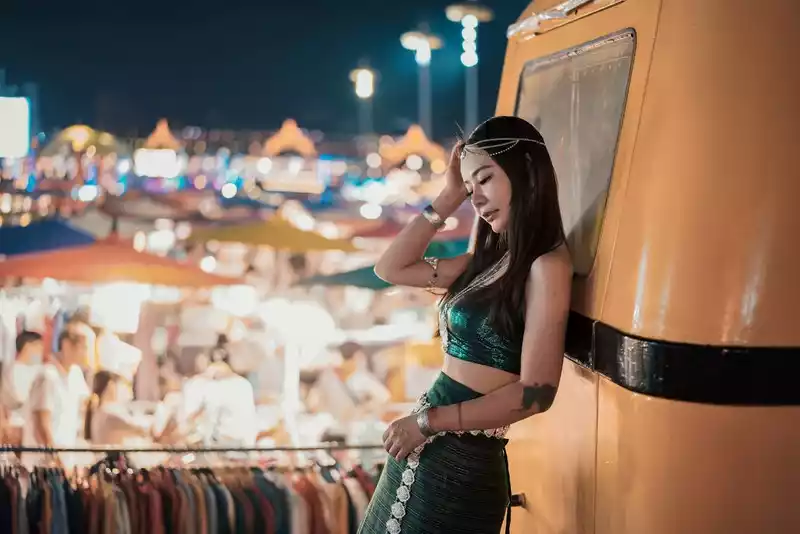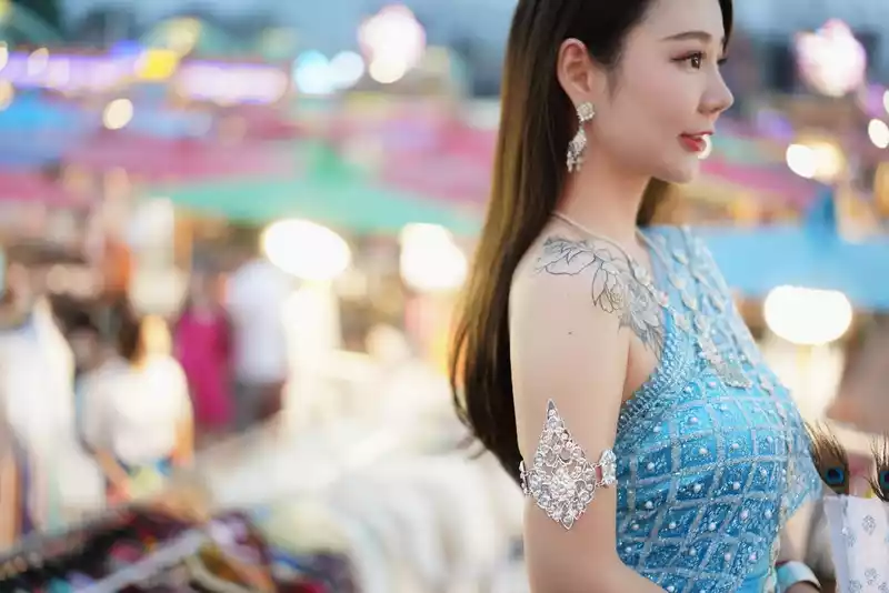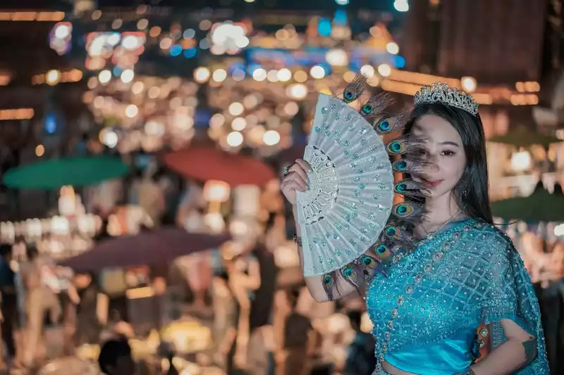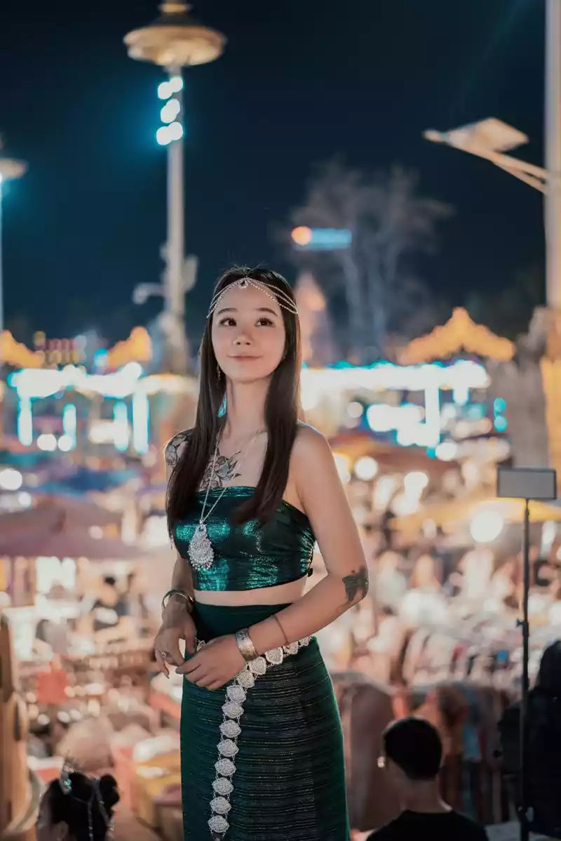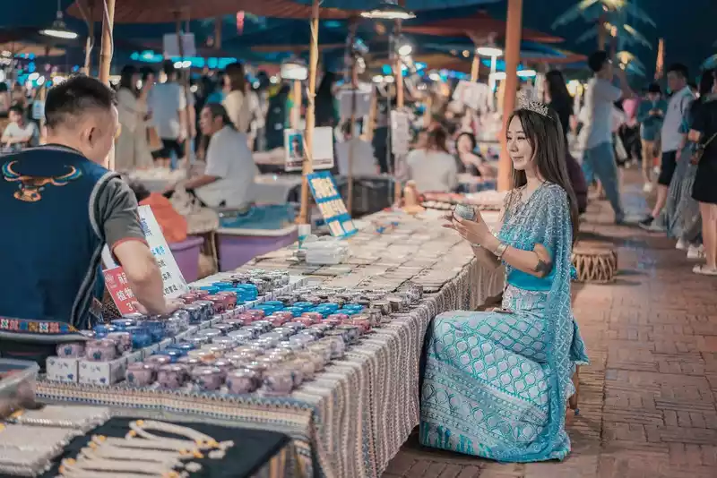 1. There is no need to go to a photography studio to rent. There are many stalls selling Dai clothing in the night market. Skirts are 45 yuan and tube tops are 10 yuan. You can match the color and style according to your own preferences. Headgear and jewelry can be bought or rented at the stalls for about 20 yuan. Other props (umbrellas, fans, golden bowls, etc.) can be borrowed between other people's photos, and they are generally willing to borrow them;
