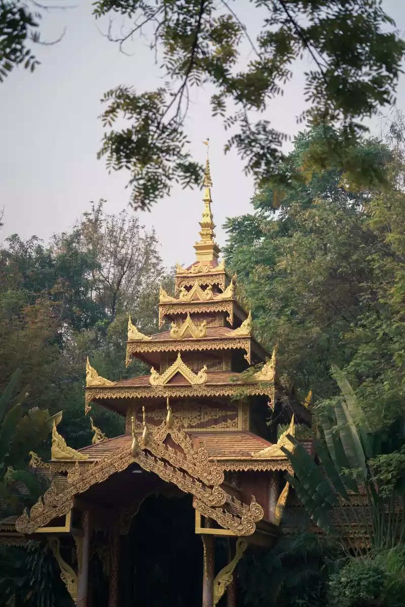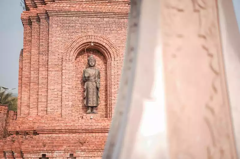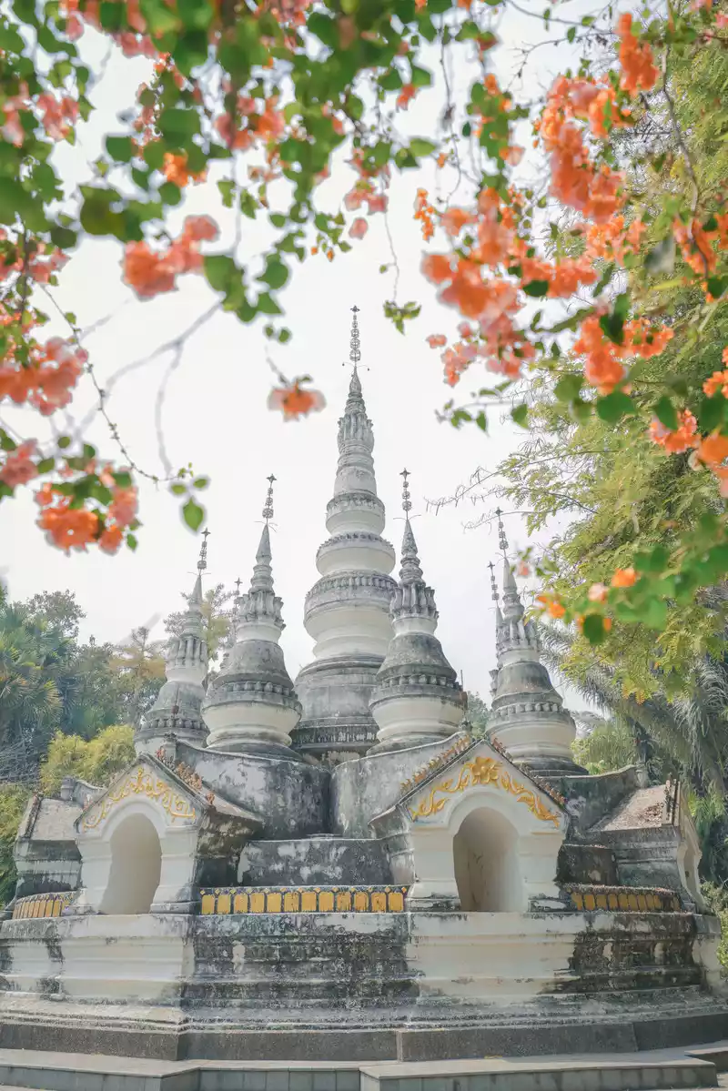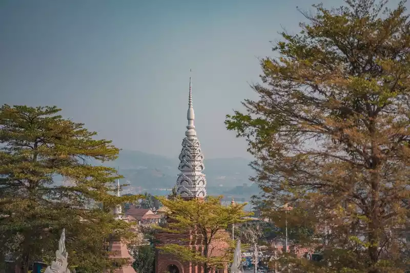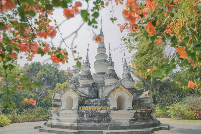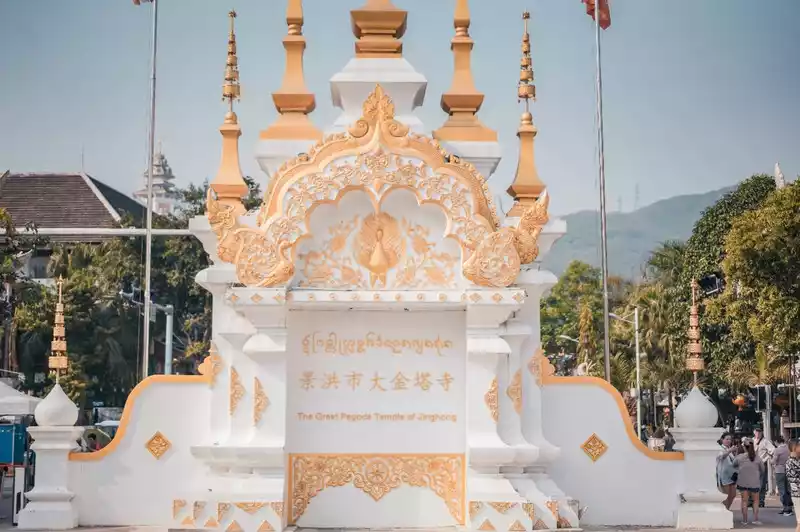 The four characteristic small pagodas surrounding the big pagoda represent the other four sceneries respectively: Jingdong( Myanmar ), Jingrai (Chiang Rai, Thailand ), Jingmai (Chiangmai, Thailand ), Jingbang (Laos Luang Prabang ).
