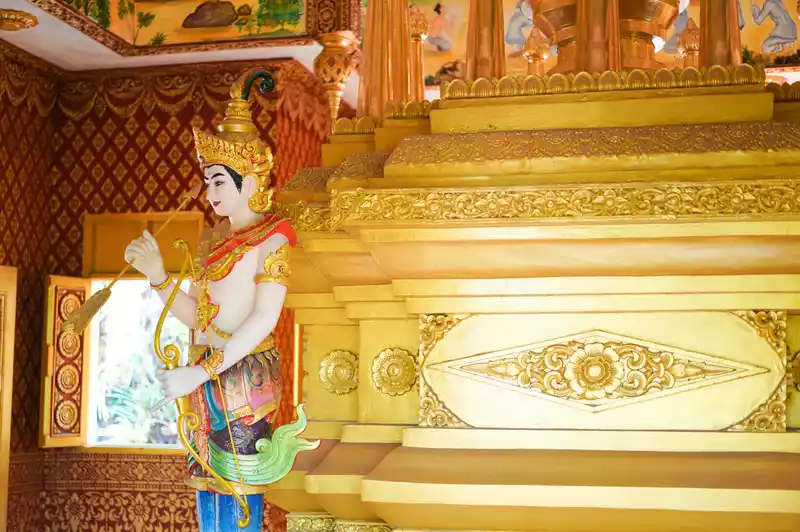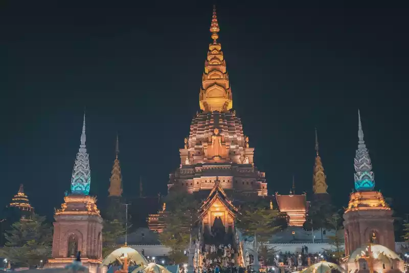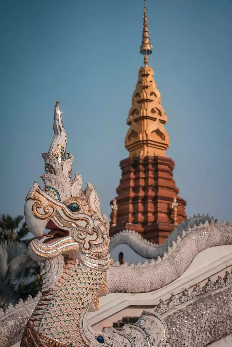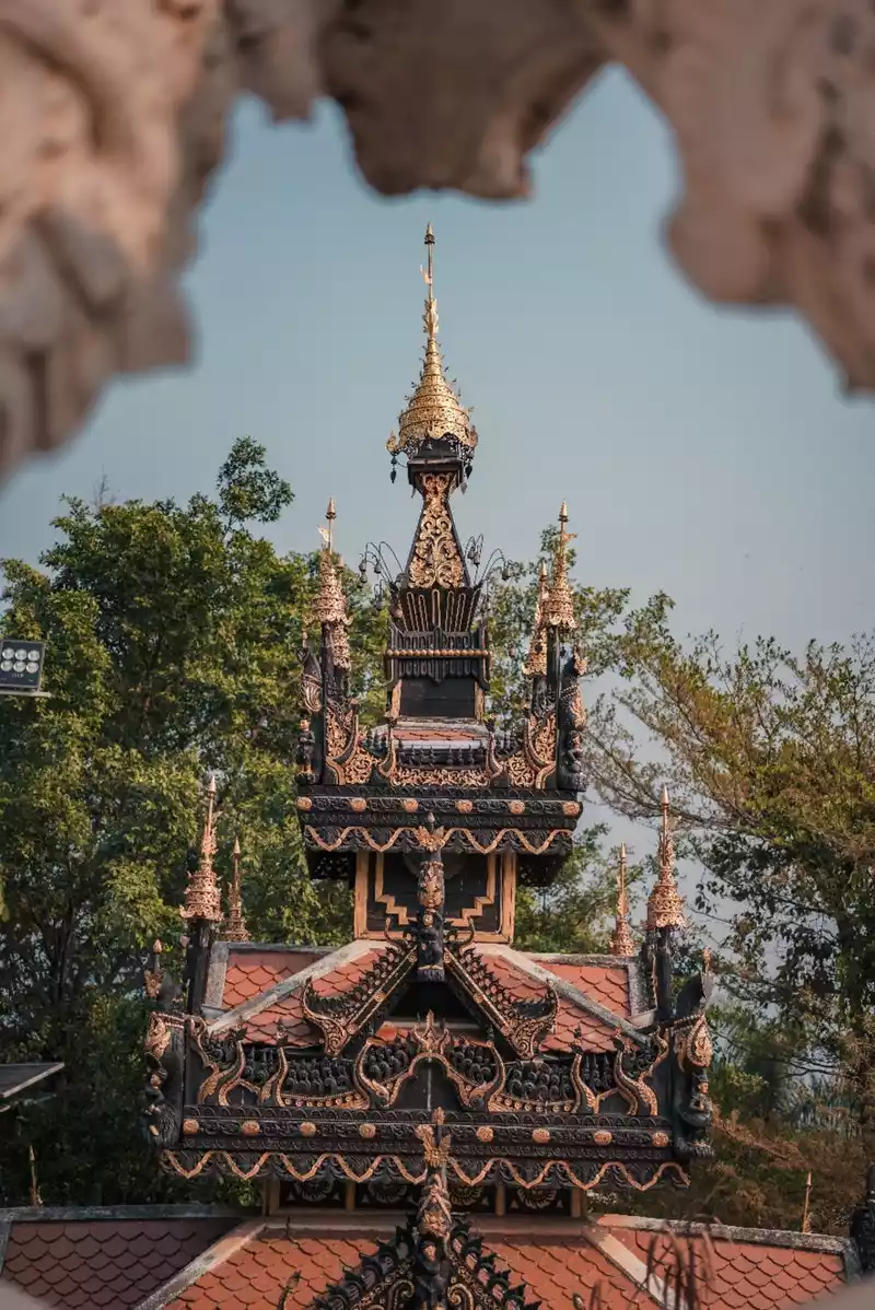 The four characteristic small pagodas surrounding the big pagoda represent the other four sceneries respectively: Jingdong( Myanmar ), Jingrai (Chiang Rai, Thailand ), Jingmai (Chiangmai, Thailand ), Jingbang (Laos Luang Prabang ).
