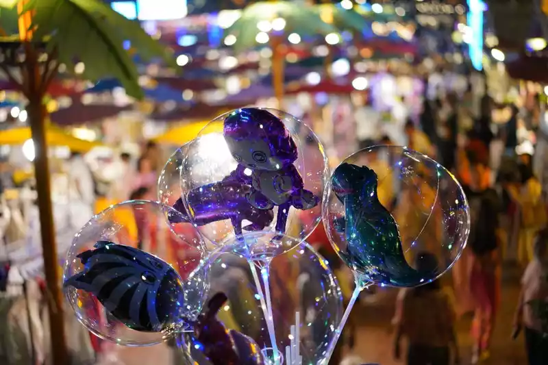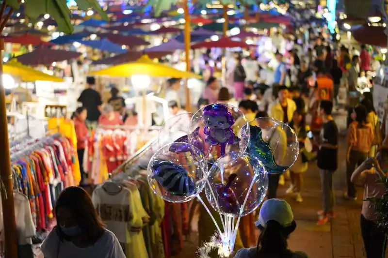 The night market is casual but has a different kind of charm, attracting all kinds of people including children, couples, and the elderly.