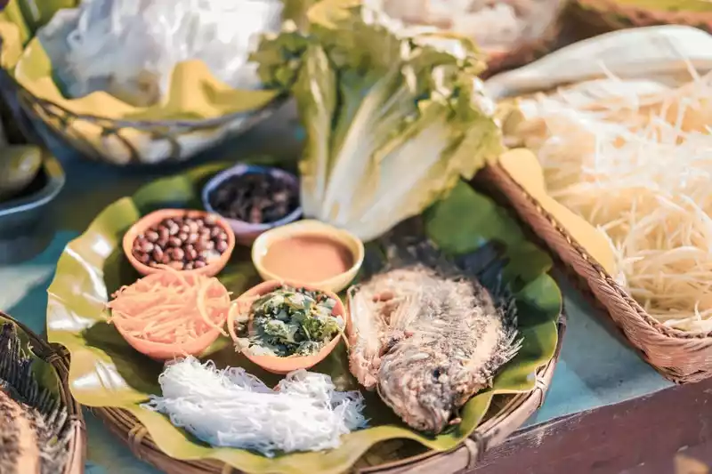 Lemongrass grilled tilapia, grilled pork belly dipped in pickle juice, grilled tofu in slurry, spicy and sour beef stir-fry, served with coconut milk pickled ruda, and a bowl of sweet pineapple rice and bamboo tube rice as the staple food. Such summer-like enjoyment can be easily achieved in the winter of Banna. Watching the making process of snacks is another kind of enjoyment: the rhythmic beating of chicken feet, the one-second thickening of Vietnam's small rolls of flour, and the art of hand-brewing iced coffee in Laos...