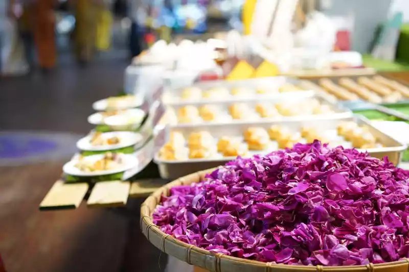 The display area is located in a relatively spacious area, with food, handicrafts, stalls, as well as unique Dai brocade, gold and silver handicrafts, etc. All kinds of products are everywhere and dazzling.