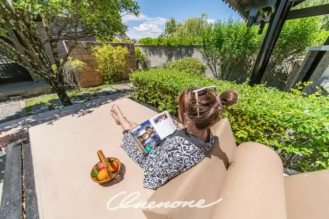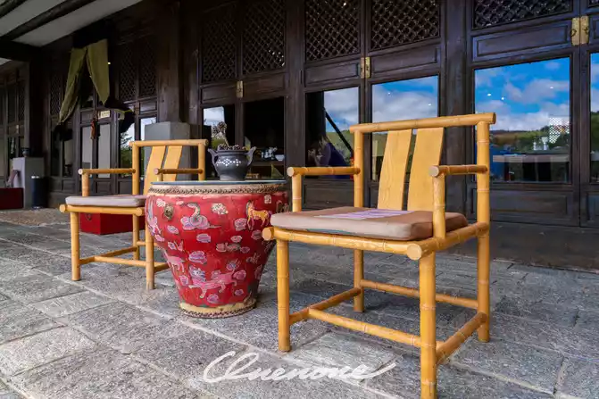 It is recommended that you dine outdoors. The cool breeze in the morning will awaken your unawakened heart. The koi carps with conspicuous patterns are parading around the lake waiting for guests to feed. The Jade Dragon Snow Mountain and the blue sky and white clouds are reflected in the water. You don’t have to look up.