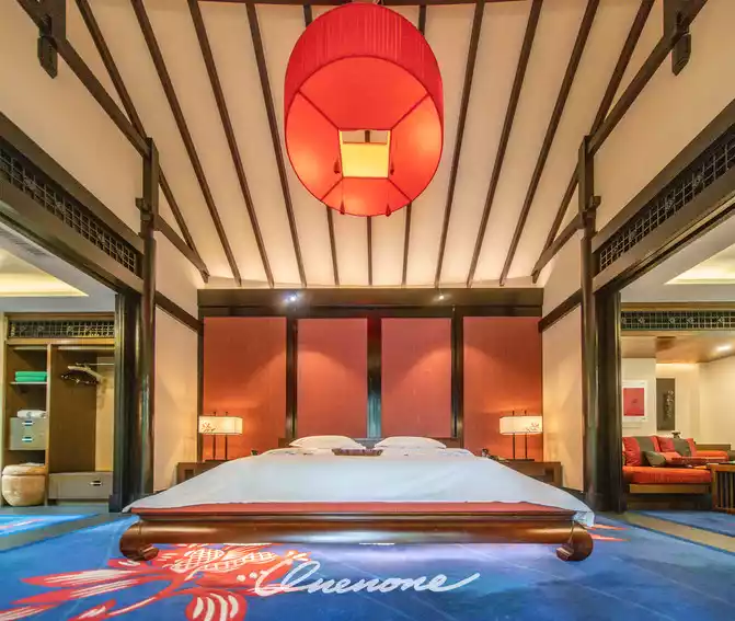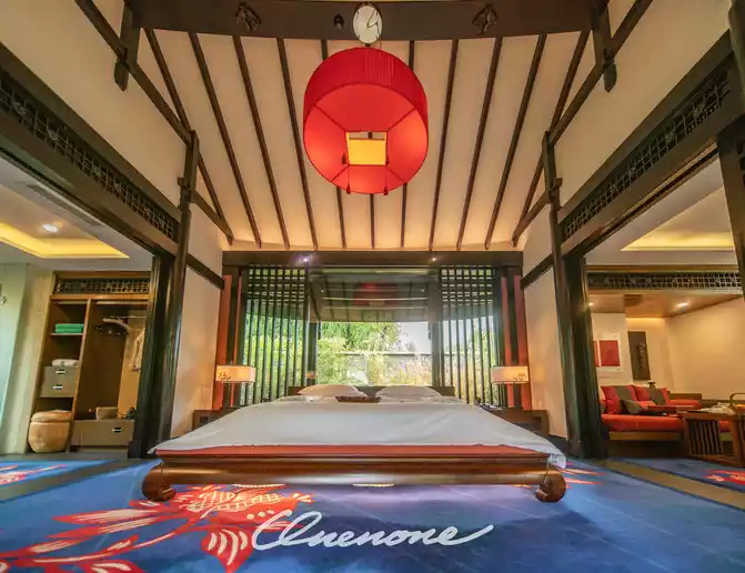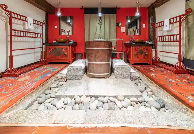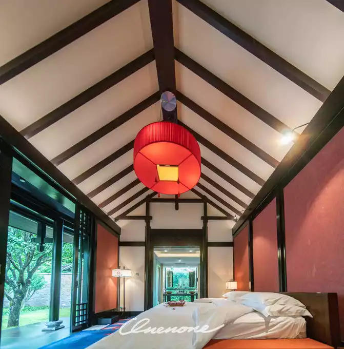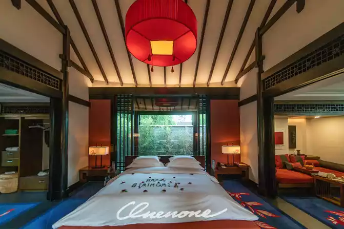 There are 15 Tibetan-style chalets, with spacious living rooms and bedrooms on the second floor, and luxurious wooden bathtubs and private garden terraces on the first floor; 6 Tibetan-style spring bath chalets, the biggest feature of which is a SPA treatment room; 8 two-bedroom Tibetan chalets with two bedrooms, facing the valley and river views; and there are also three two-bedroom Ren'an chalets, all with their own fire pits. There are only two options for room size, 175 or 325 square meters.
