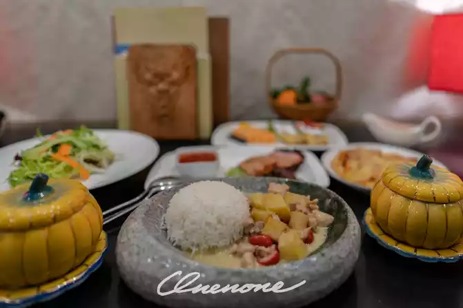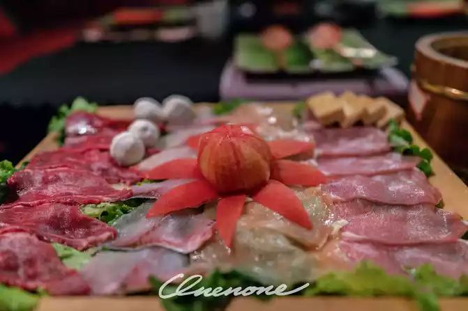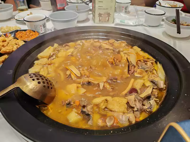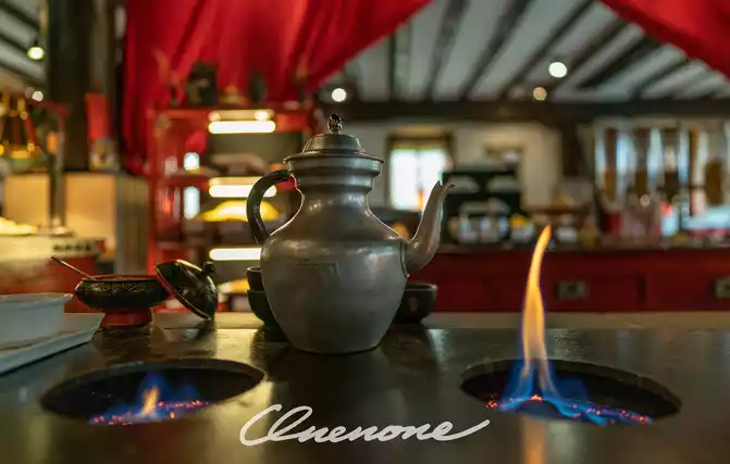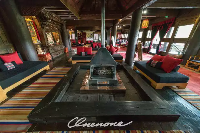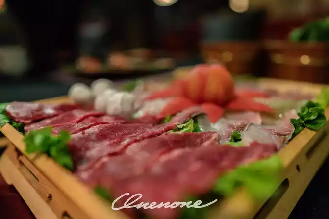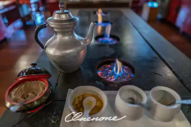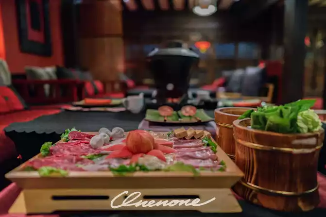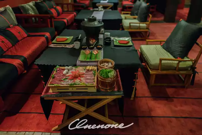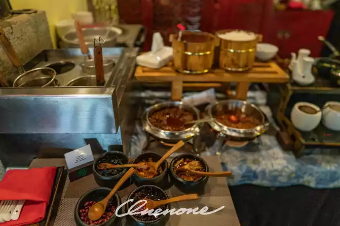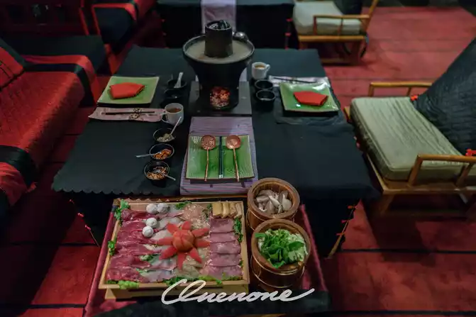 Put silky chicken and wild mushrooms into a special black clay pot made in Nixi Village, simmer with special Tibetan spices, simmer slowly over charcoal fire, wait until the soup boils, then add yak meat, matsutake, black pork, wild river fish and other fresh ingredients, add the hotel chef's secret hot pot dipping sauce, and then eat until you lean on the wall.