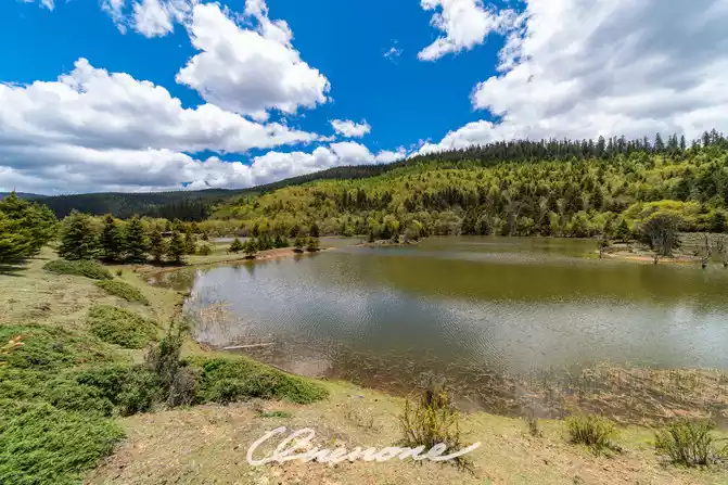 The Bita Sea, which in Tibetan means "a sea of oak trees turning into felt", is no longer visible. According to legend, the oak trees on the lakeside are as dense as green felt. There are a large number of azaleas growing in the woods. When the spring flowers bloom in May and June every year, the azalea petals fall into the water. Fish eat the slightly poisonous azaleas and float to the surface one after another. This is the azalea.