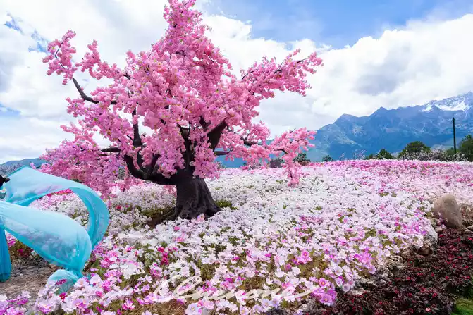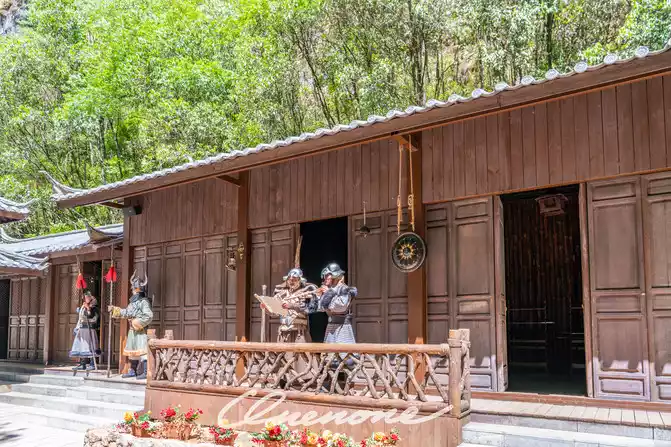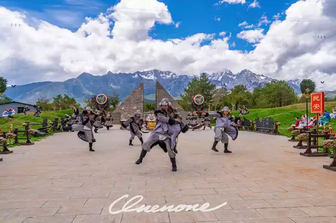 So, what about you? If you've been to Lijiang many times, you might need to experience a new attraction. The Snow Mountain Canyon Performing Arts Park, nestled beneath Jade Dragon Snow Mountain, features not only the indoor performance "Snow Mountain Mythology," a masterpiece of Dongba fantasy, but also the interactive outdoor landscape show "Mu Mansion Storm." Both performances are directed by renowned actor, director, and producer Yu Rongguang. Visitors can relive this classic period drama, which chronicles the turbulent times and feuds within the Mu clan during the Ming Dynasty, when the Naxi chieftains of Yunnan ruled the region. The two-hour-plus tour features a welcoming show at the entrance, a blessing show upon entering the sea of flowers, and a love suicide show across the canyon. Each show lasts only about 10 minutes, yet every performance boasts exceptional artistry, including descents from the sky using open-air pressure and somersaults while wearing over ten pounds of armor. The backdrop is Jade Dragon Snow Mountain, and after each show, visitors are free to take photos with the performers. The route also includes popular photo spots like the flower sea, the Snow Mountain Mirror, the filming location for "Mufu Fengyun," the Yu Rongguang Works Exhibition Center, the Sky Plank Road, a via ferrata climbing experience, Bodhi Wisdom Valley, and the Mabang Inn.