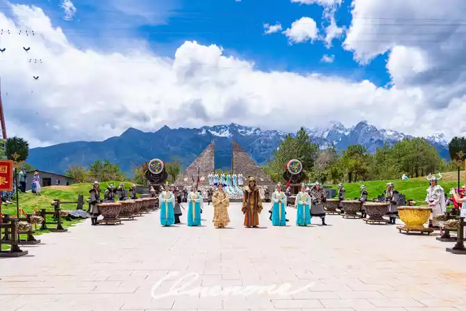 2. Lijiang Snow Mountain Canyon Performing Arts Park: Nestled amidst the snowy canyons, the glorious 500-year-old Mu Mansion shines brightly for generations to come.