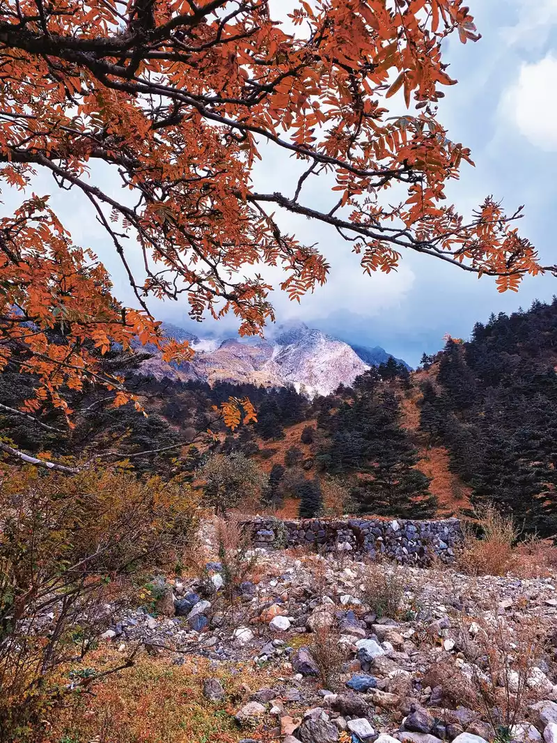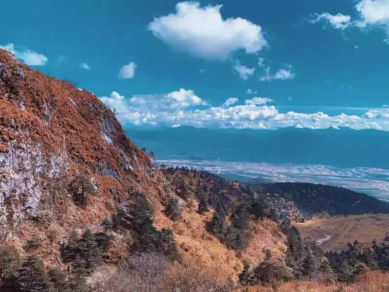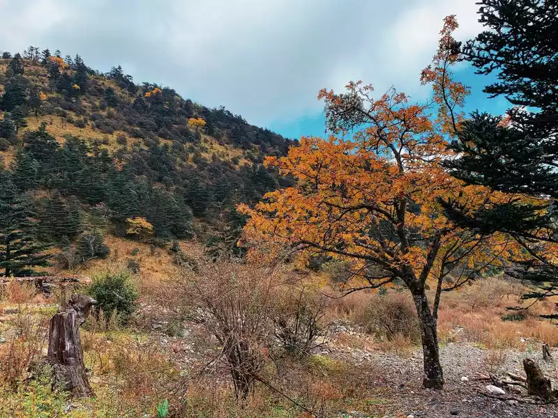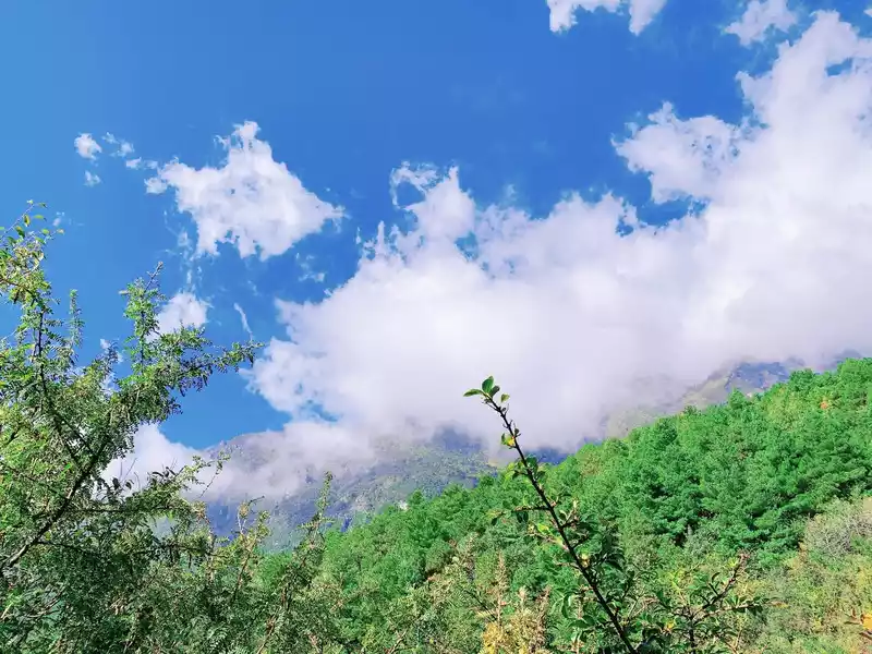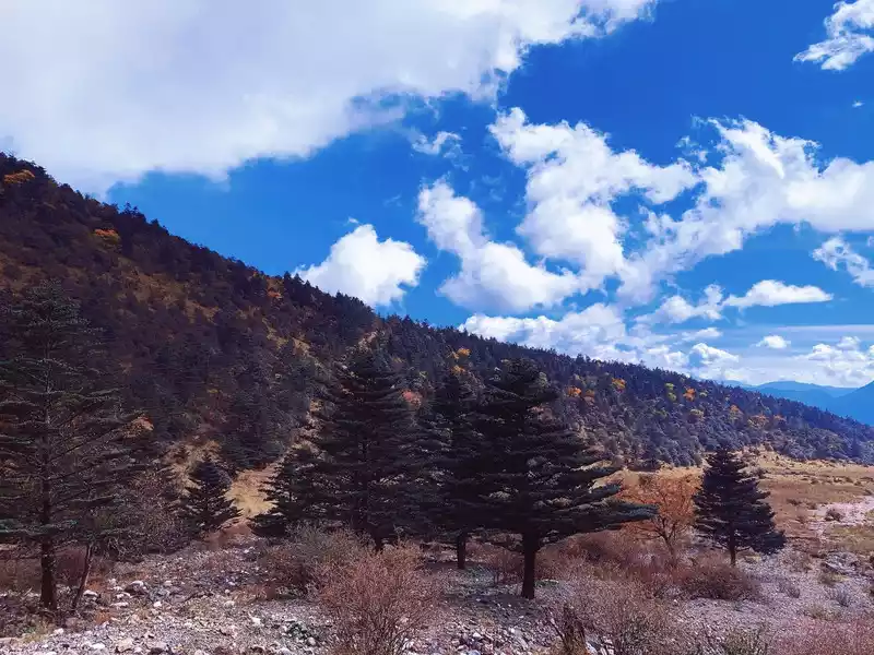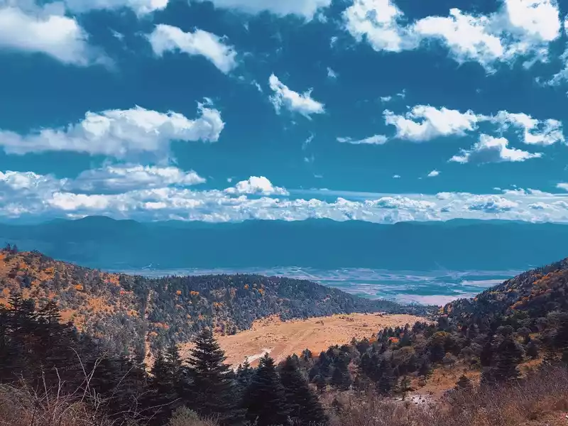 Starting from Yuhu Village, we left the village and reached a meadow. We then crossed the meadow and entered the forest. We followed the caravan route through the woods. The path was easy to follow, with a steady climb and minimal difficulty. Don't worry about taking the wrong route; at most, you'll take a detour; the route always leads to the same destination. There are rest areas for the caravan along the way. The first large rest area we reached is called Buckwheat Field. After crossing the buckwheat field, we entered the forest again. We continued along the road until we exited the woods and arrived at the leech dam. The woods were quite boring, so we didn't take many photos. There's a large rock at the leech dam. It's said that a spring will emerge from it when it rains, but I haven't confirmed it. Once at the leech dam, we could see the quicksand slope from a distance. Arriving at Machheba, my eyes lit up. Lijiang's autumn truly astonished me. The mountains and forests were dotted with a rainbow of colors, making it feel like I'd stepped into a fairy tale world straight out of Andersen's.