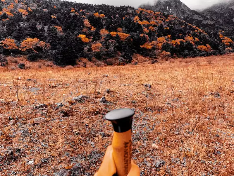 After the arrow bamboo forest, we reached the most interesting quicksand slope, also known as the Cordyceps Slope. This is the most challenging and most exciting part of the entire route. The ascent is difficult, but the descent is easy: over an hour up, ten minutes down.