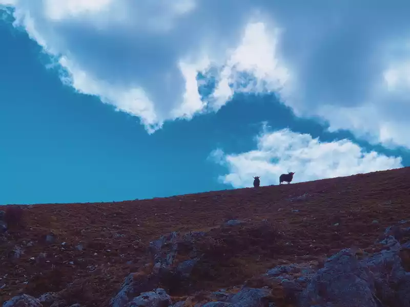 I hadn't imagined seeing yaks and sheep in the mountains—it was truly a relief. Our guide was incredibly helpful, helping us carry our belongings, pulling my friend up, and encouraging us to keep climbing.