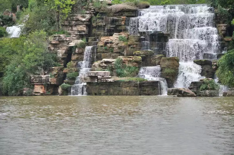 The waterfall park was transformed from an artificial river. When I went there, I didn’t know what preparations or promotions were made. The corridor near the water was closed, so I could only view it from a distance.