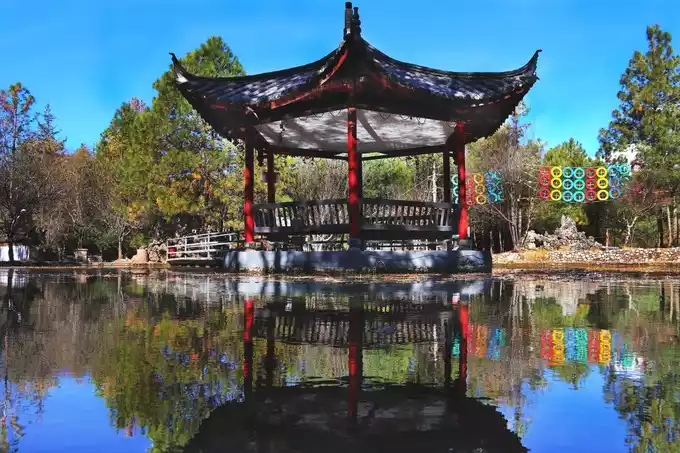After dinner, you can stroll through the forest area of Falcon Valley to help digest your food. Falcon Valley's scenery isn't just about the snow-capped mountains; you can also relax in a small pavilion within the forest. The breeze is gentle, birds are everywhere, and you can even spot squirrels hopping around in the pine trees, which is another interesting sight.