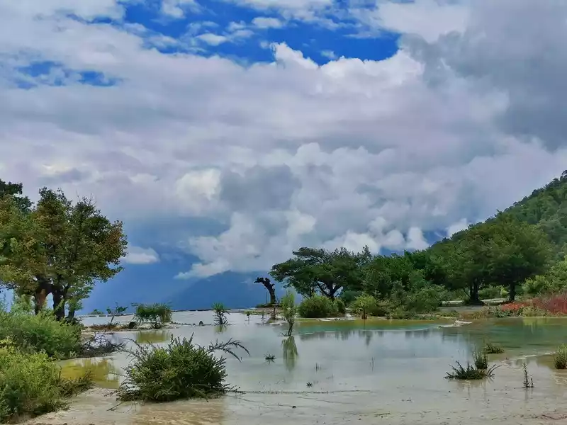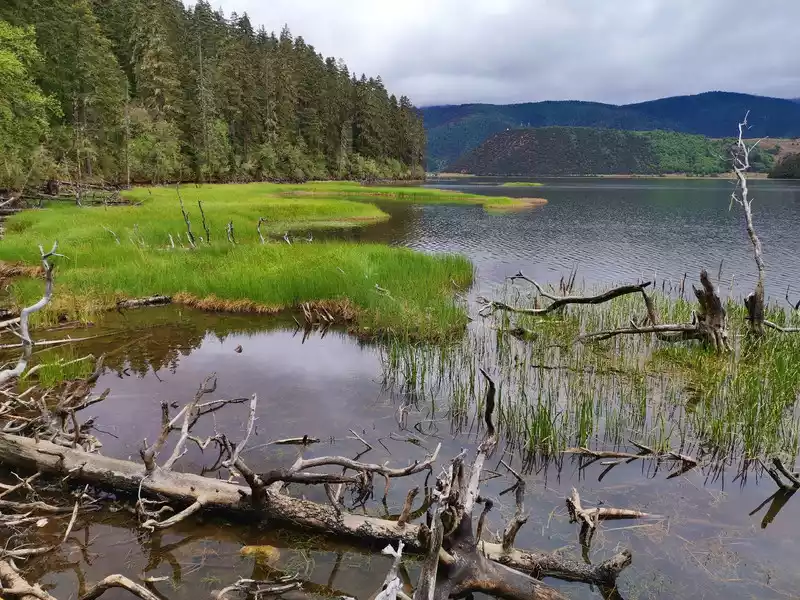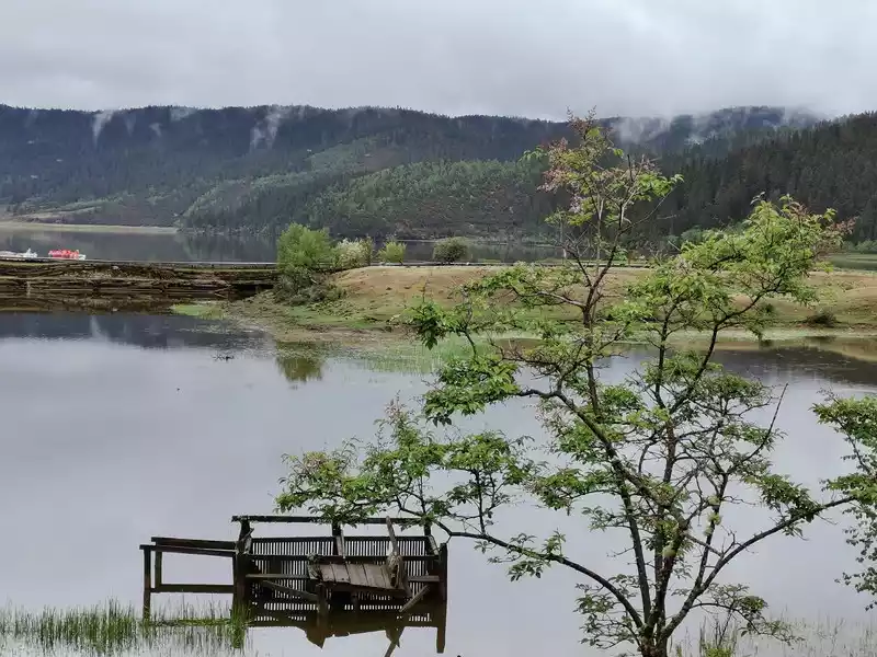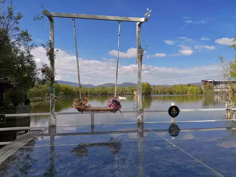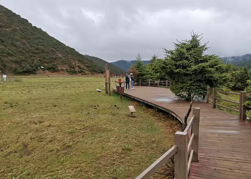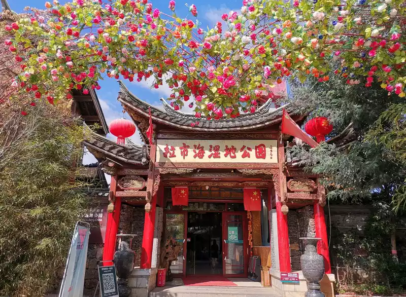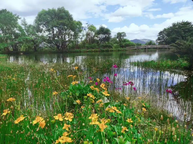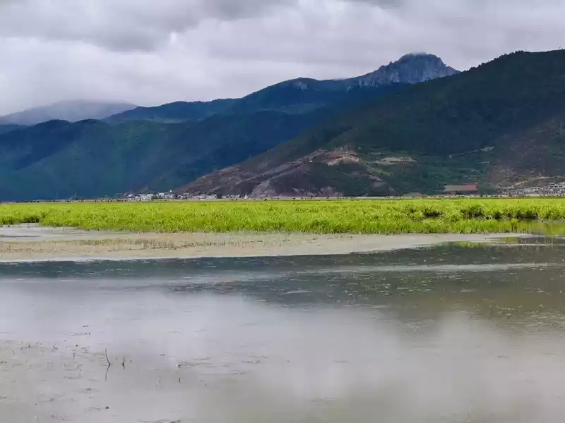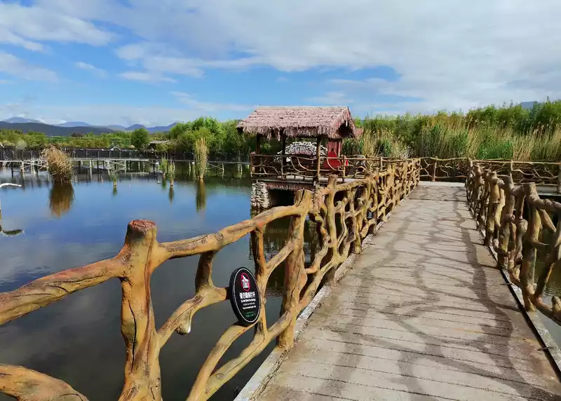 On the second day of the trip, we set out from Yuhu Village to Shangri-La, and we will stop by Lashi Lake, Tiger Leaping Gorge, and Zhongxiaodian Flower Sea on the way. Day 2. Lijiang Shangri-La Self-Guided Trip 3: Lashi Lake Lashi Lake Wetland Park is located in the middle of Lashiba Dam, 10 kilometers west of Lijiang County. It is the first nature reserve named "wetland" in Yunnan Province. Since it's conveniently located on the way to Shangri-La from Lijiang, we decided to visit it. The park is quite large. The staff said the train only runs after 10:00 PM, but we had limited time, so we could only walk along the nearest plank road and around the perimeter. Admission is 30 yuan.