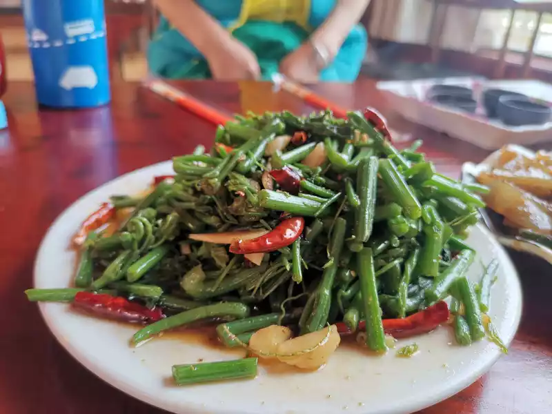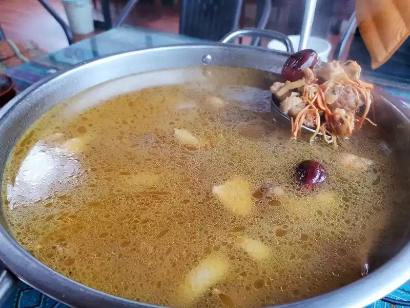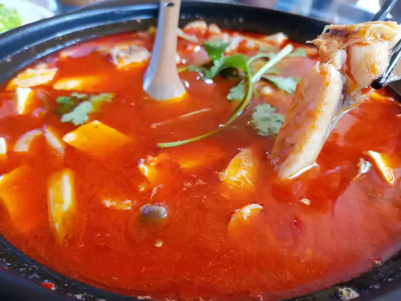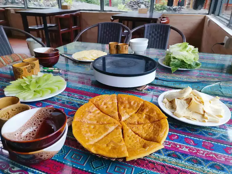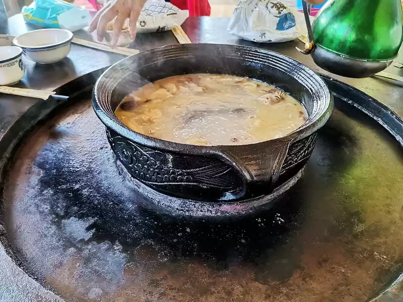 It was time for lunch. On the way from Tiger Leaping Gorge to Shangri-La, we found a small roadside restaurant and chose a fish hotpot that did not require waiting, with a plate of bait blocks and rice.