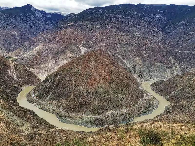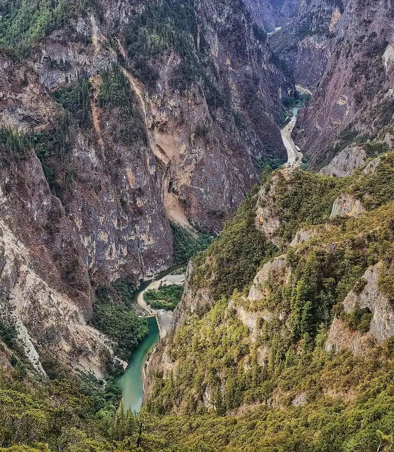 Tiger Leaping Gorge is formed by the Jinsha River encountering the Yulong and Haba Snow Mountains.