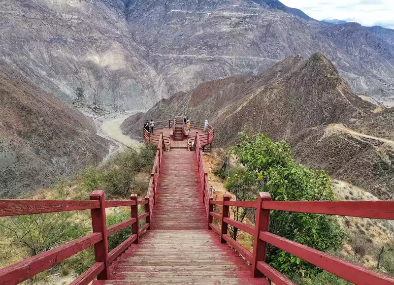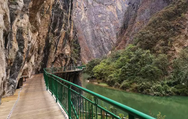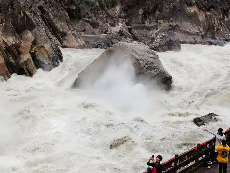 From the highest viewing platform in the Tiger Leaping Gorge scenic area, you can clearly see the momentum of the rushing river, but the sense of shock is not enough. You have to walk down the plank road to the viewing platform at the bottom of the river to feel the surging power of Tiger Leaping Gorge.