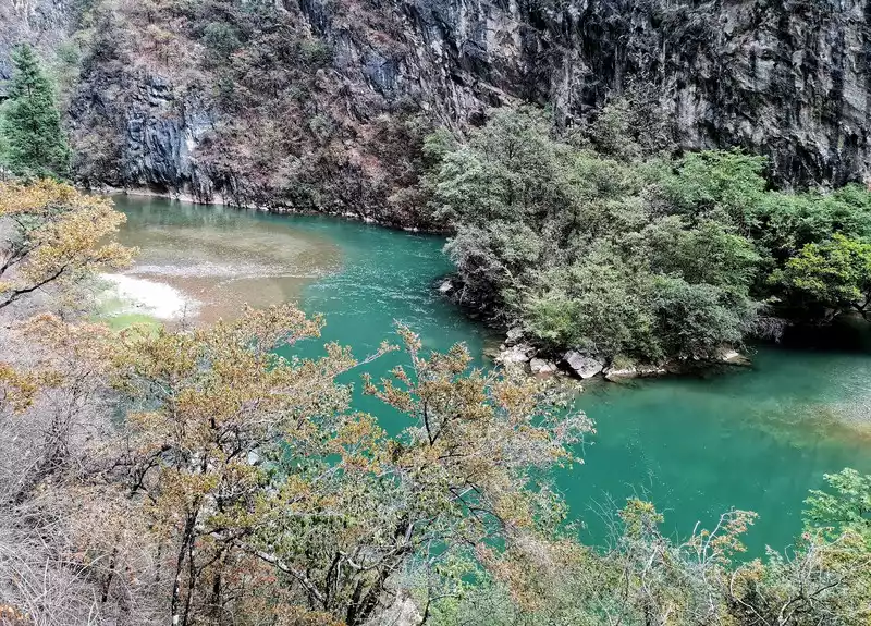 Blue Moon Valley is located at the foot of Jade Dragon Snow Mountain. It was formed by the "White Water River" formed by the snow from Jade Dragon Snow Mountain. From top to bottom, Blue Moon Valley features four terraced lakes: Yuye Lake, Jingtan Lake, Blue Moon Lake, and Tingtao Lake. There is also an artificial waterfall and a water platform. Our plan was to walk up from the Blue Moon Valley drop-off point and then back down. This basically circled the lake in about 1.5 hours. We walked, looked around, and rested, leisurely spending more than three hours.