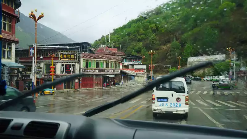 We set out for our destination again. This is a checkpoint before entering the Yulong Snow Mountain Scenic Area. All vehicles stop for inspection. Two groups of people in charge of the inspection questioned the driver and us separately. The main purpose should be to regulate the tourism market.