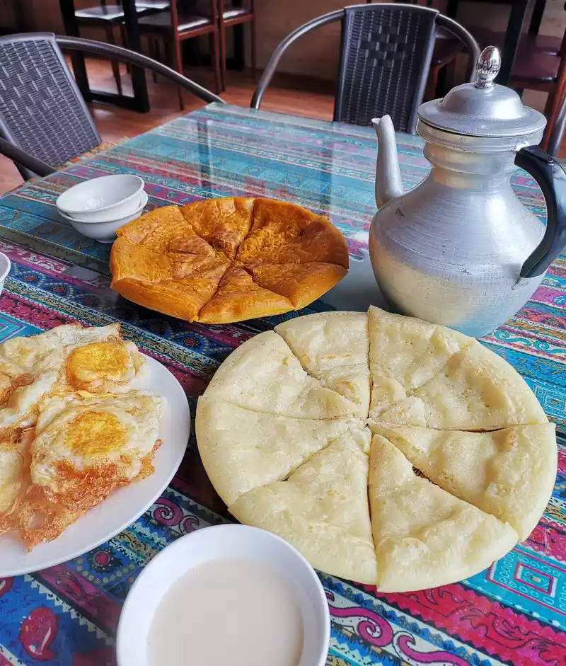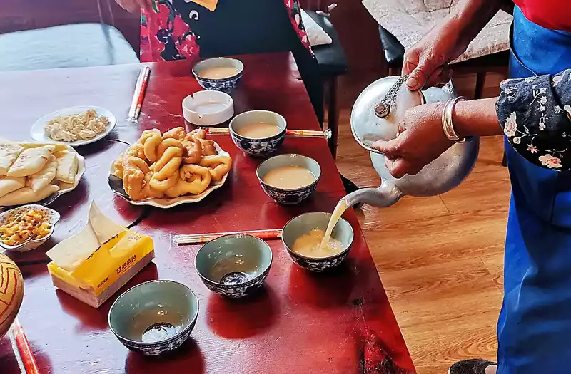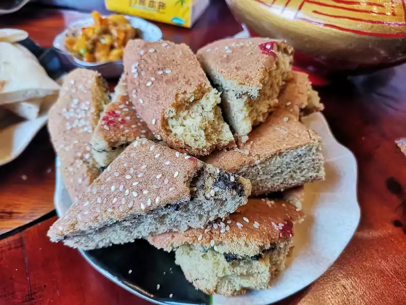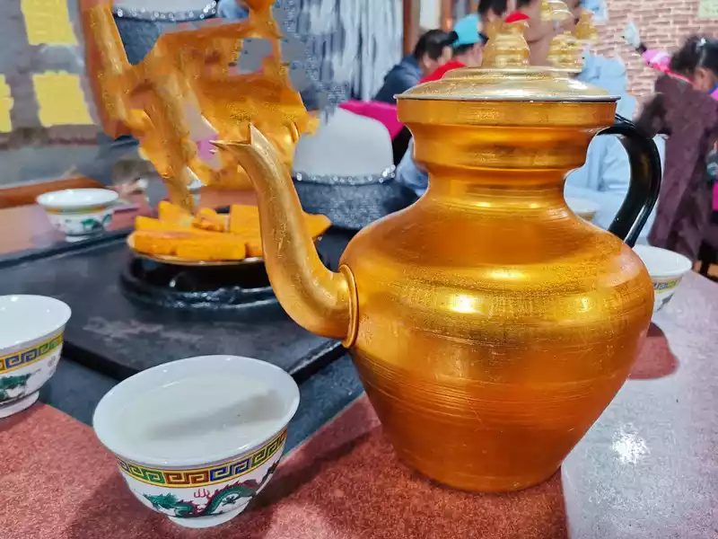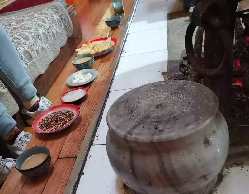 Dinner was served at a small restaurant nearby in the ancient city, including butter tea, highland barley cakes and some snacks.