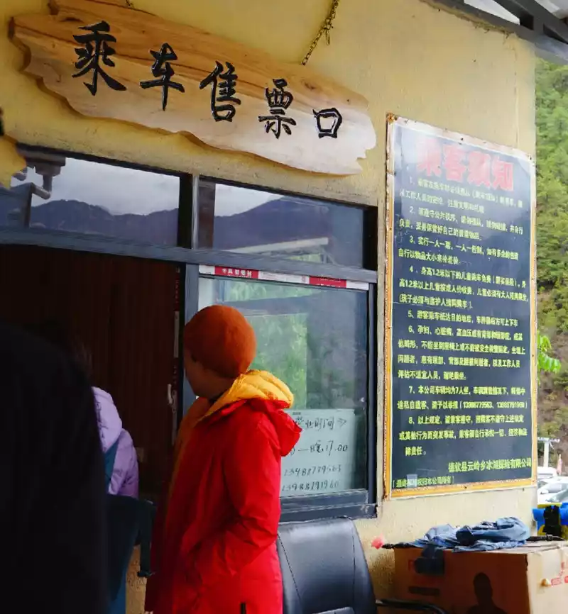 我们边走边观景大约用了一个小时才到达上村乘车点,买好车票,到观景亭等车(现场可能没有车,得下村的车坐上乘客过来)。