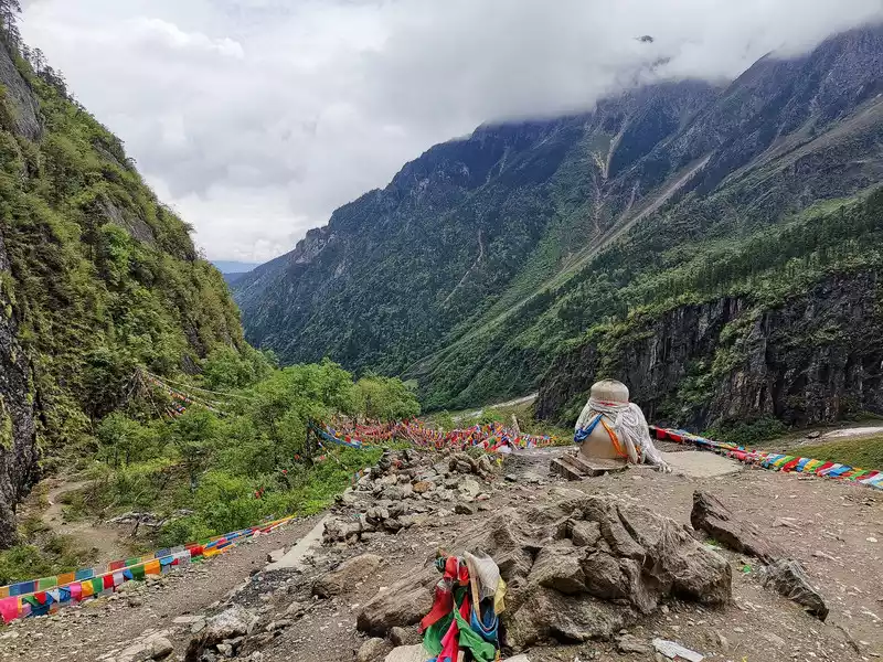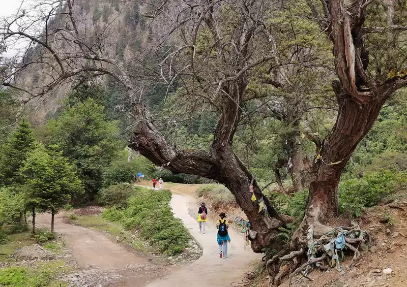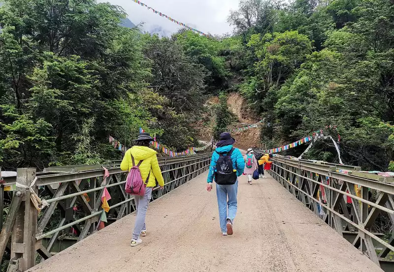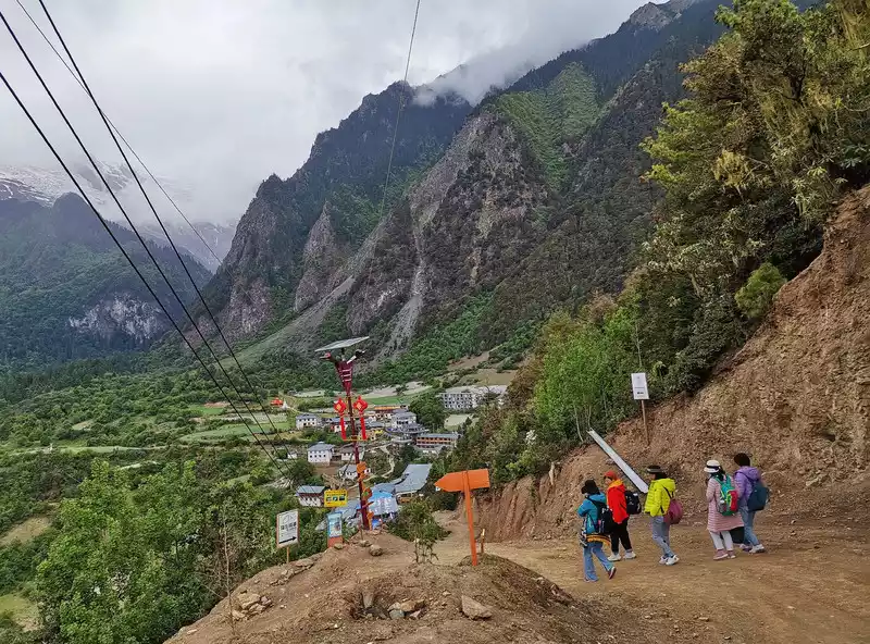 离开雨崩有徒步和乘车两种方式,徒步路线是下雨崩到尼农,大约十几公里,需用时约四个多小时,全程基本是下行,但是路况非常不好。