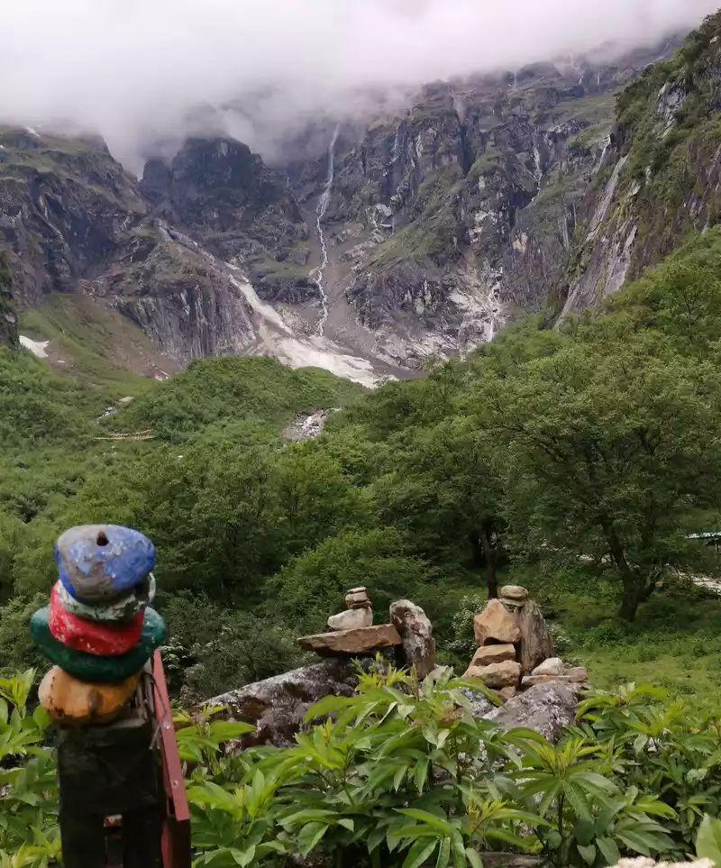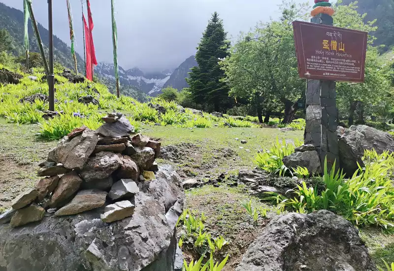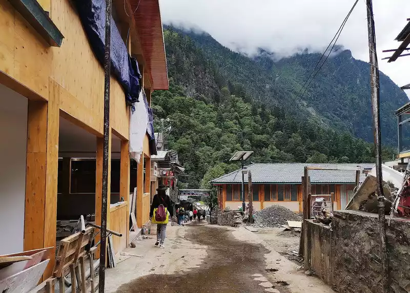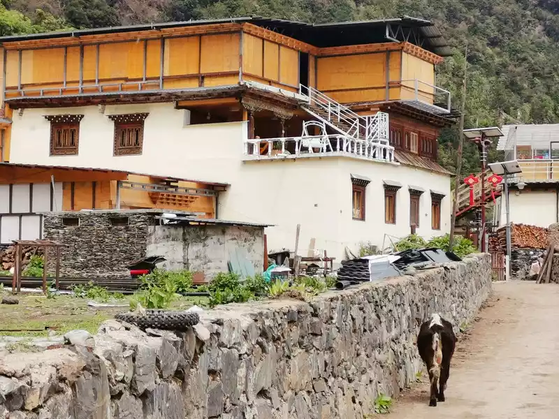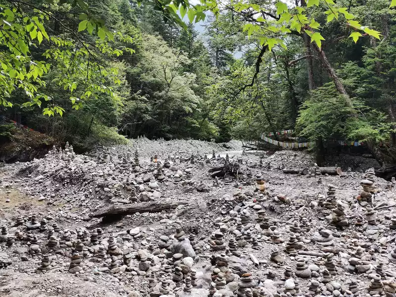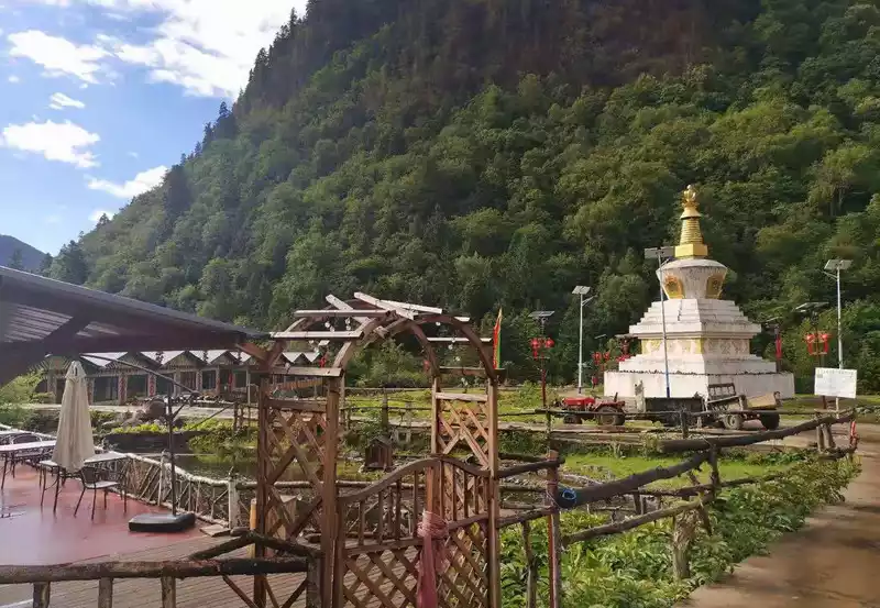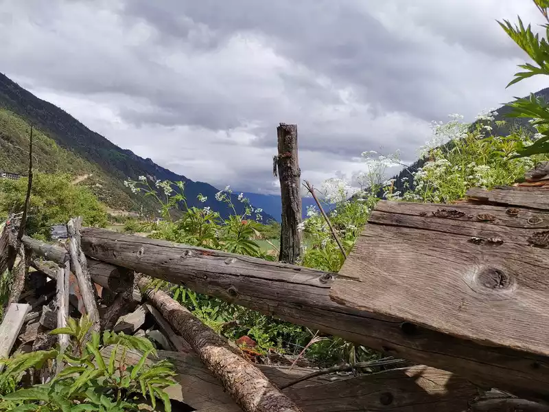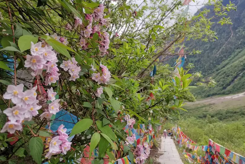 时间不早啦,向湖边返回啦,路过一家应该是距离雪山最近的民宿,彩色石块砌起的围栏很有藏族风情。