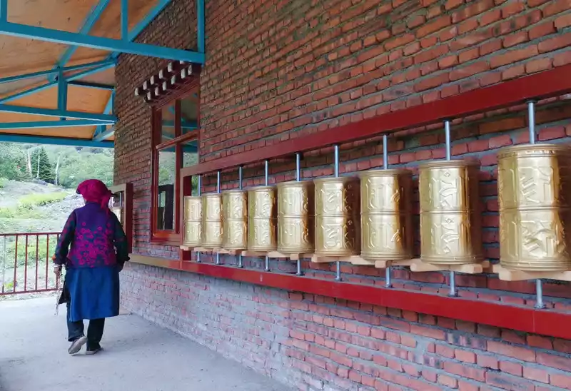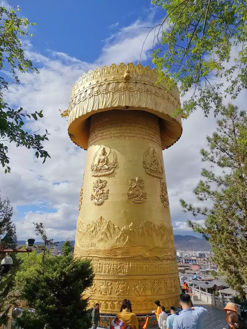 We arrived at Shangri-La County at around 4 pm. It seemed still early, so we parked in front of Moonlight Square and decided to go to Guishan Park first. There, there was the world's largest prayer wheel that attracted us.