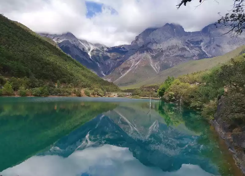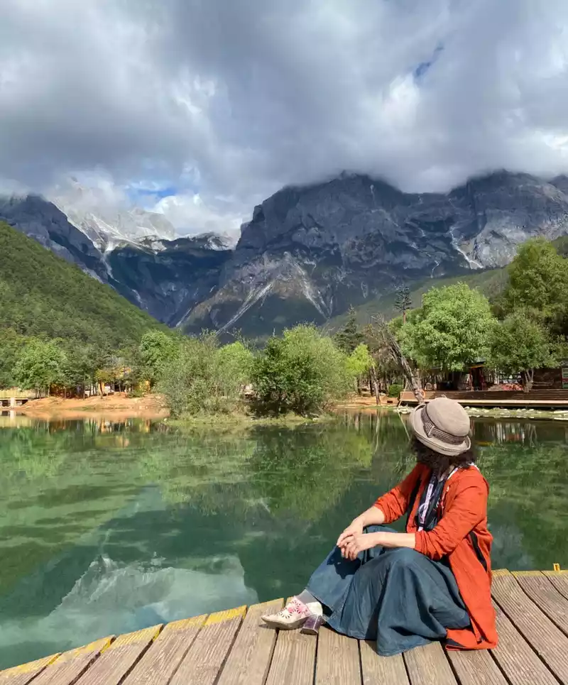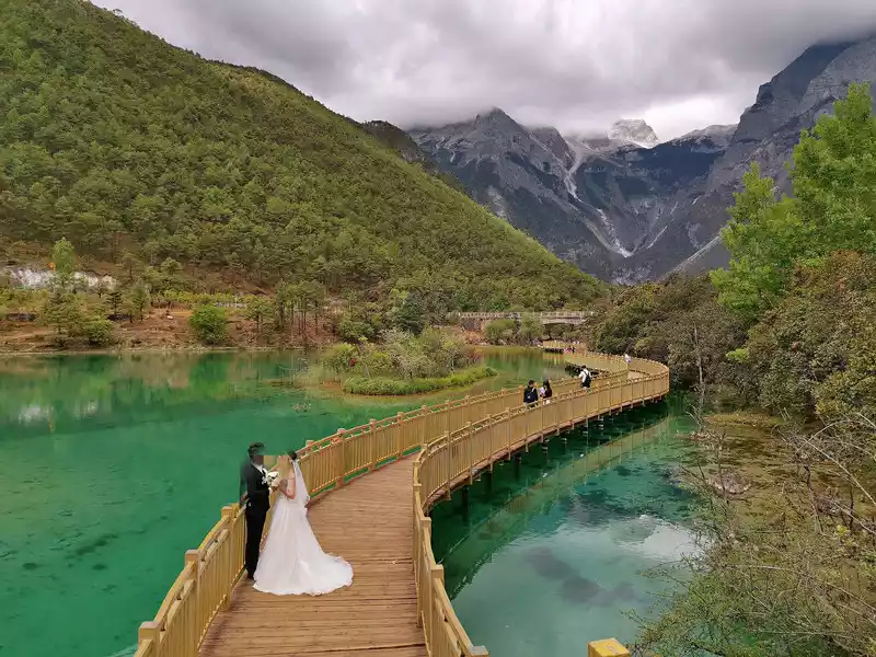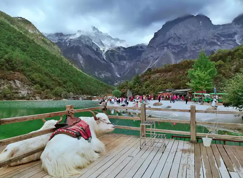 This is the busiest place after getting off the Blue Moon Valley shuttle bus. Blue Moon Valley is backed by Jade Dragon Snow Mountain. Looking towards the snow-capped mountains from every side of the lake is so intoxicating: the majestic snow-capped mountains, the azure or emerald green lake water, and the beautiful canyons surrounding the lakes, combine to form a series of stunning scenery, and every angle is a masterpiece.