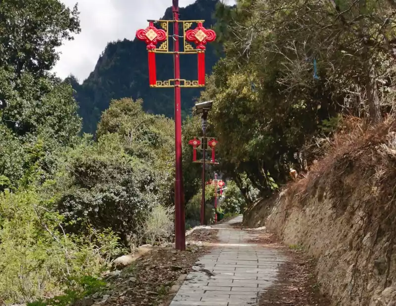 上下村的分道处,还是沿着红色路灯的小道继续前行。