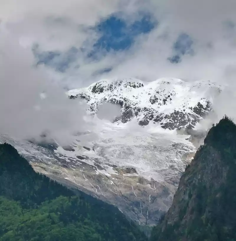 上村、下村背靠的雪山都是那么清晰,冰川也如此清晰。
