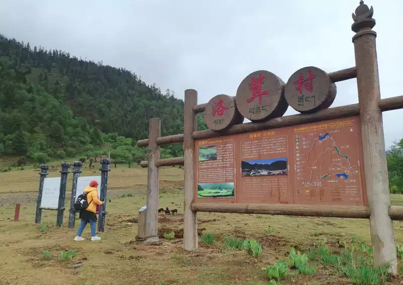 原来酒店所在的这处地方便是景区保留的老村落洛茸村,路边几头藏香猪很自在在吃草,还是第一次见放猪的。
