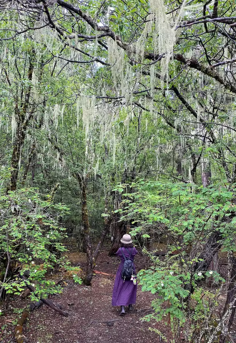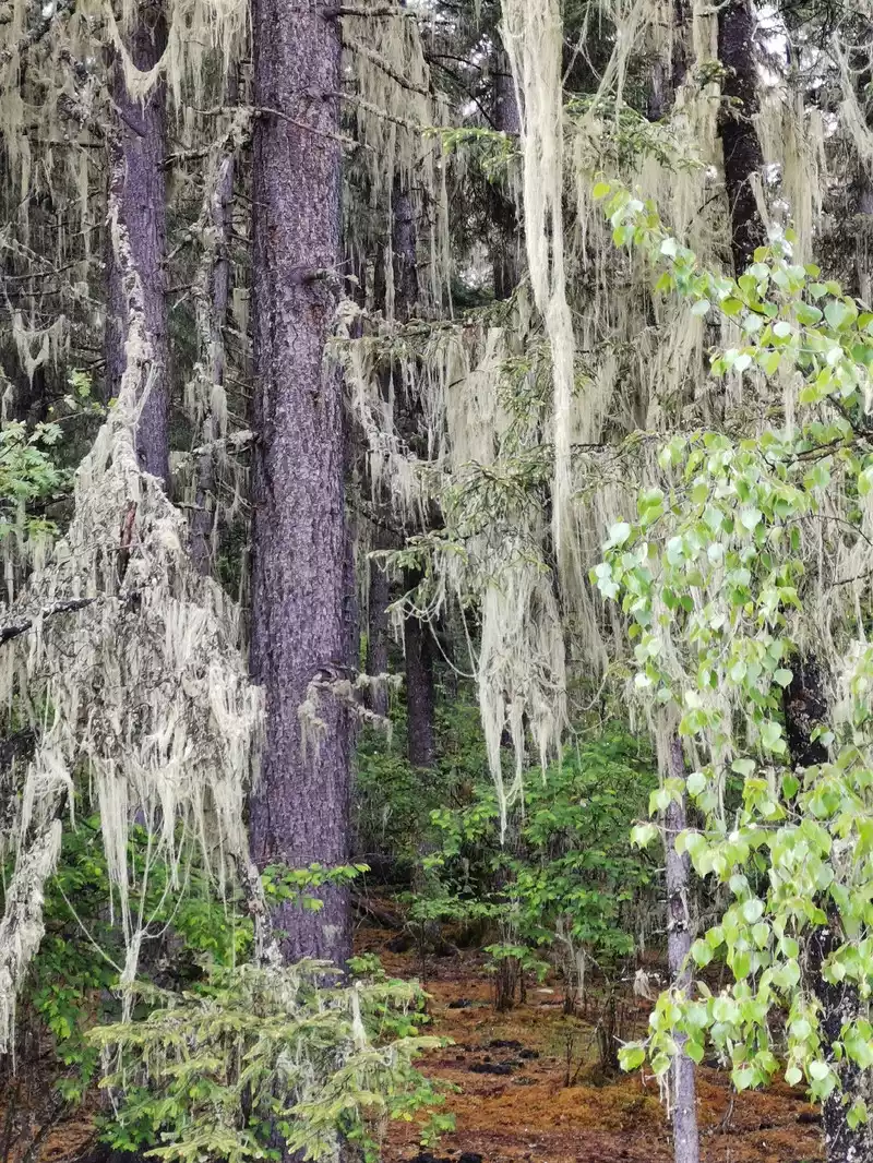 栈道的右侧是大片的原始森林,高大的老树上挂满了松萝,说明这里的环境质量真的是非常好了。
