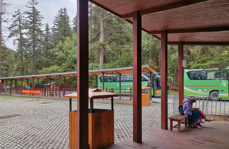 After passing this checkpoint, it takes about a few minutes' drive to reach the scenic area parking lot. After purchasing the scenic area tickets, we walked to the tourist bus center.