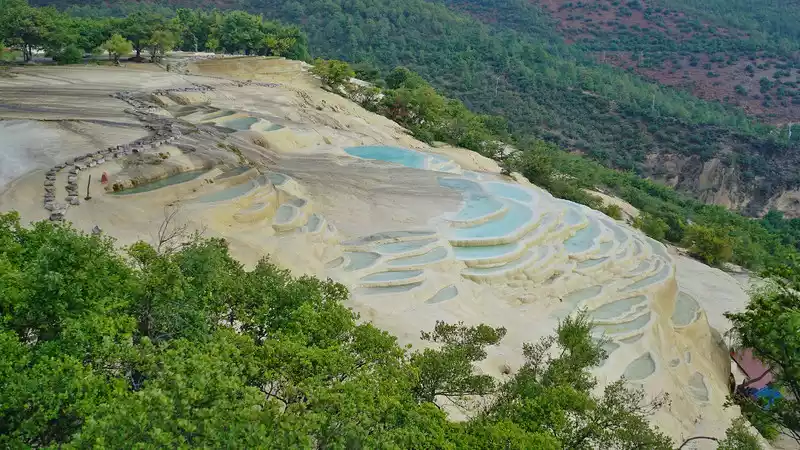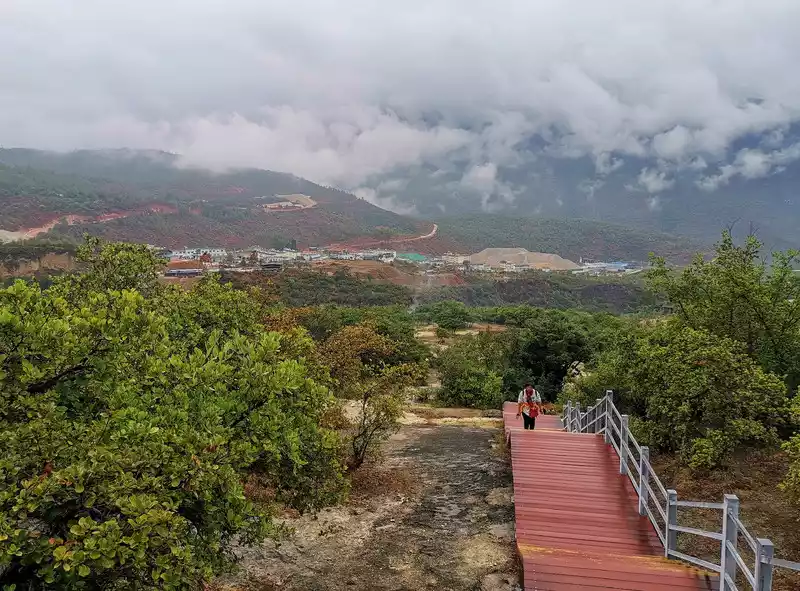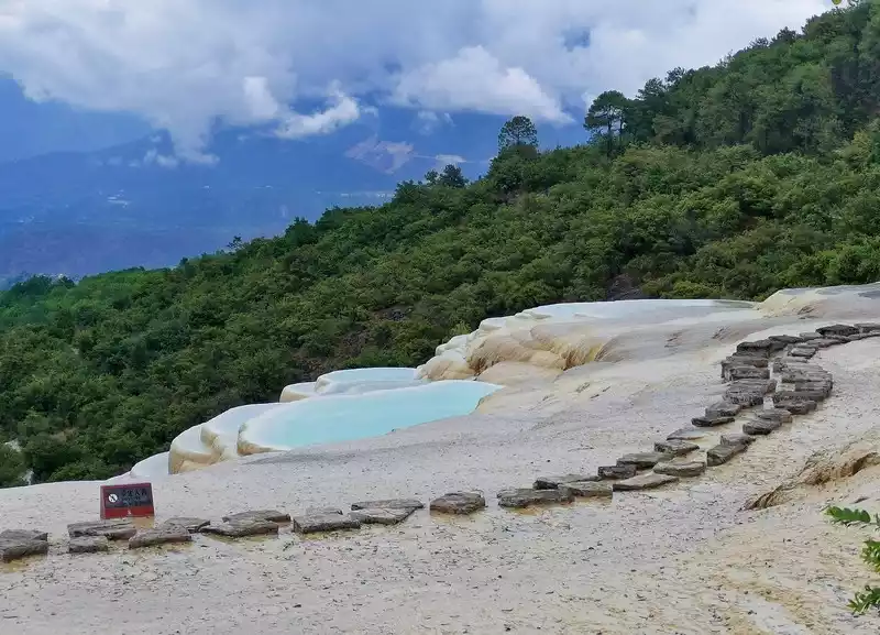 由第二层观景台向上,右边是白水台最大的水台集中景区,而左边便是白水台全景观景台。