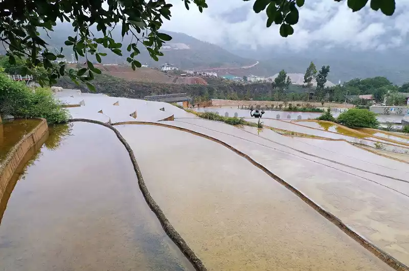 第二层观景台便是刚才所见的台礕之上的台面了,水台高高低低、层层叠叠的错落着,只觉得一种剔透的美、恬静的美扑面而来,好吧,还是以古诗润之吧:“云波雪浪三千垄,玉埂银丘数万,曲曲同留尘不染,层层琼涌水常凝。 ”