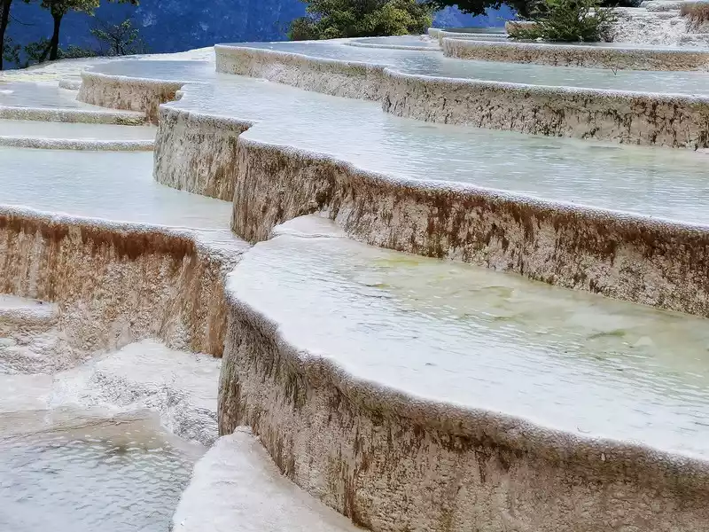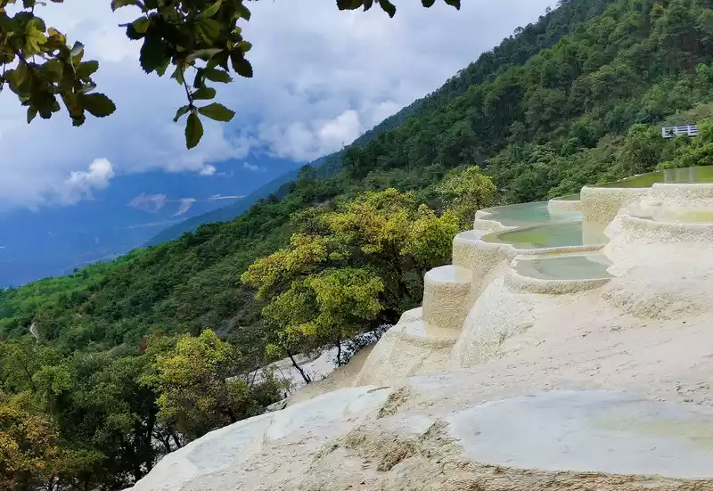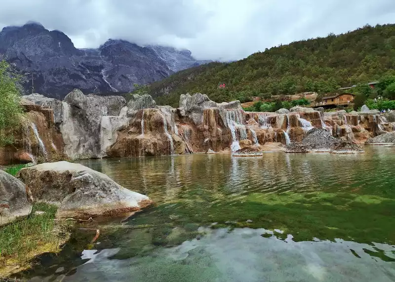 白水台位于哈巴雪山麓,海拔2380米,乃东巴圣地,纳西之源。白水台的形成是由碳酸钙溶解于泉水中的自然奇观,这处白水台也是我国最大的华泉台地。