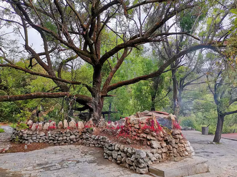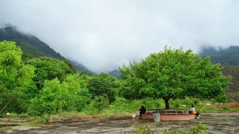 白水台后方靠近山脚边的休息区很是安宁的样子,一棵大树如同一把巨伞为休息的游人遮阳挡雨。