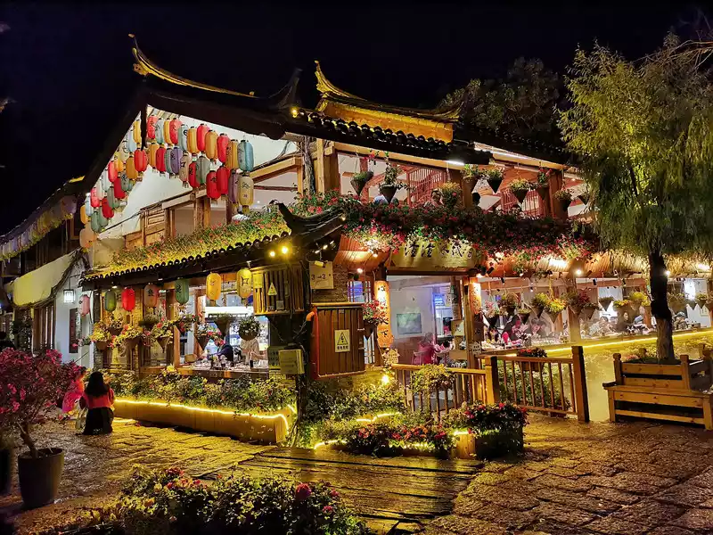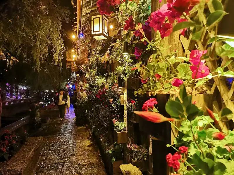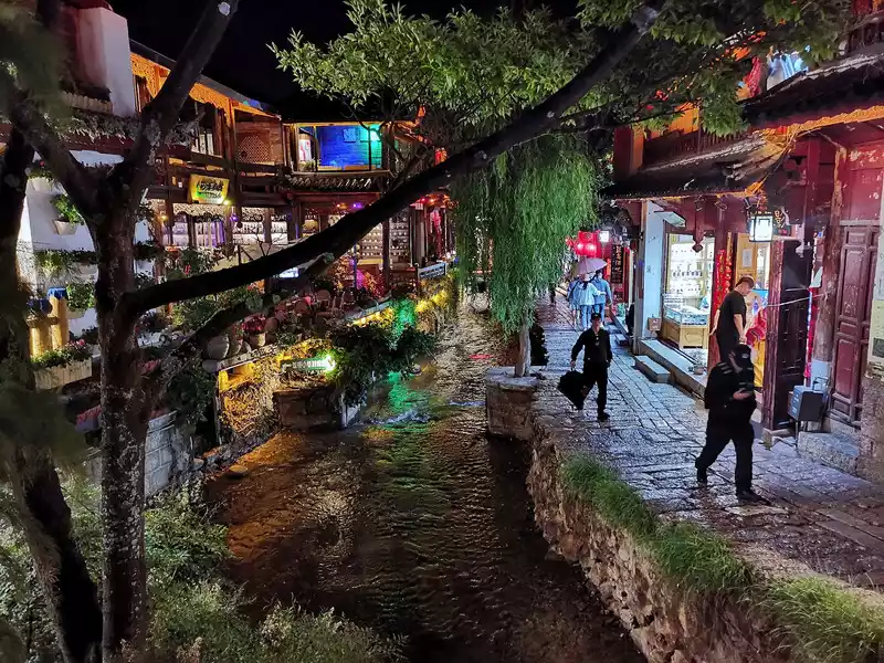 放下行李,稍事休息,我们便溜达到古城街区,此时已是华灯初上,但除了四方街及附近游人较多,其他街道人流稀少。