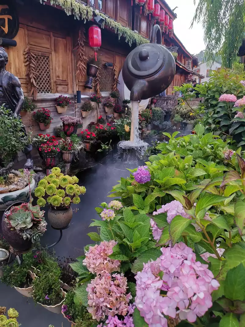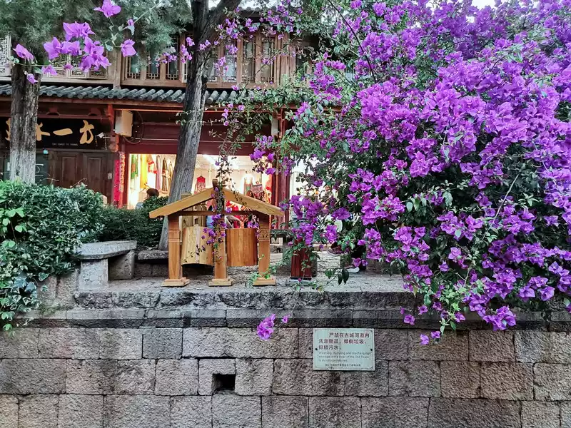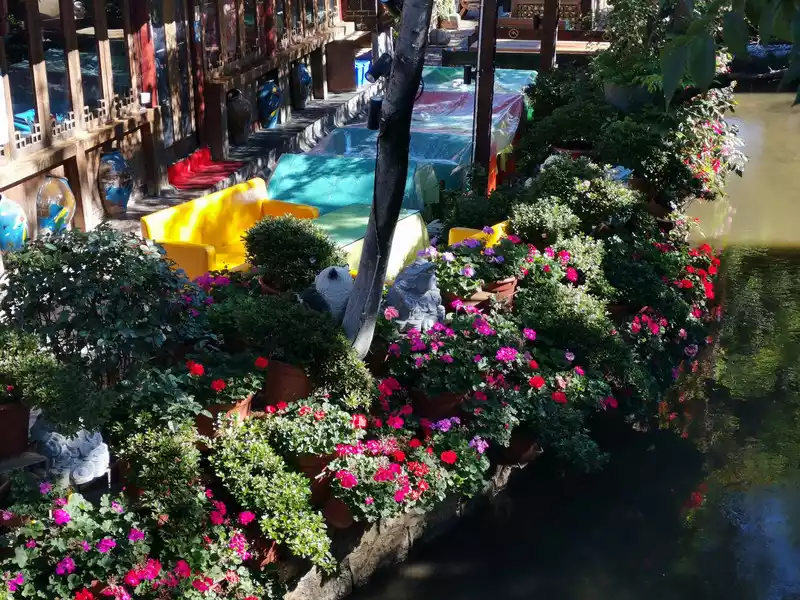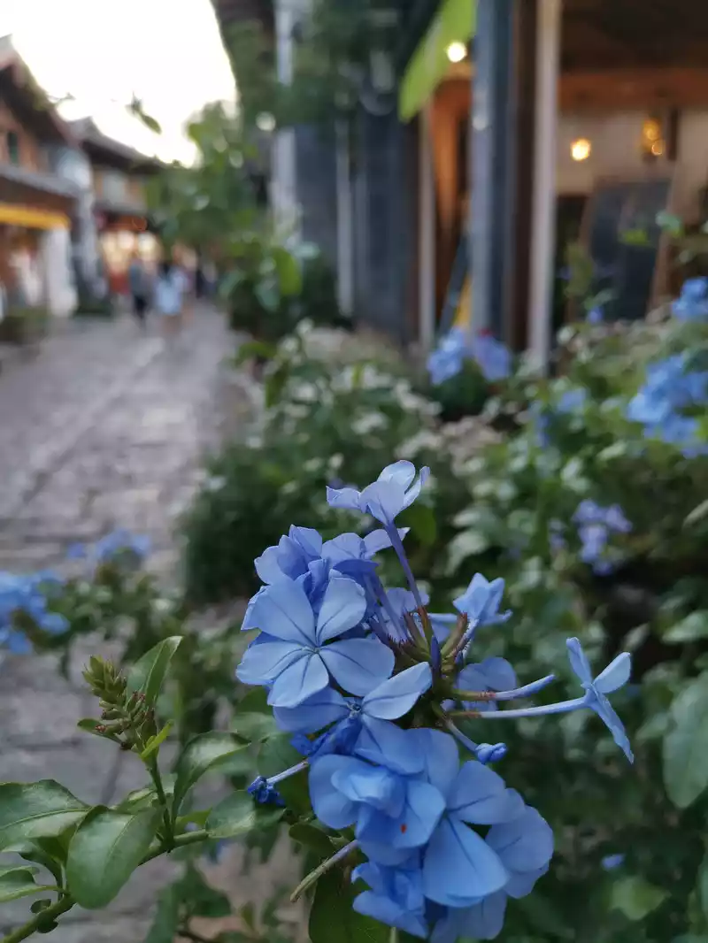 在四方街的米线店吃了早餐后,沿河的街道也已明亮了起来,见多不怪的花丛也更艳丽了几分。