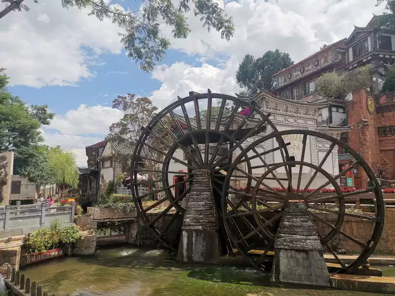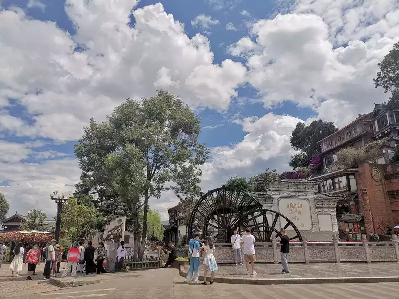 由子母水车对面的便道一直向前便是古城的一个进出口,出了古城一路向前,大约几分钟的功夫便可直达黑龙潭公园。