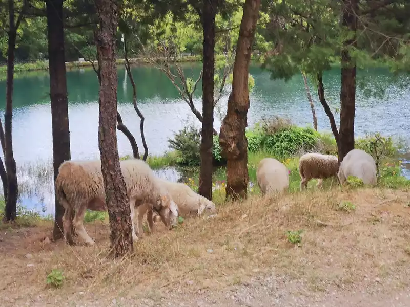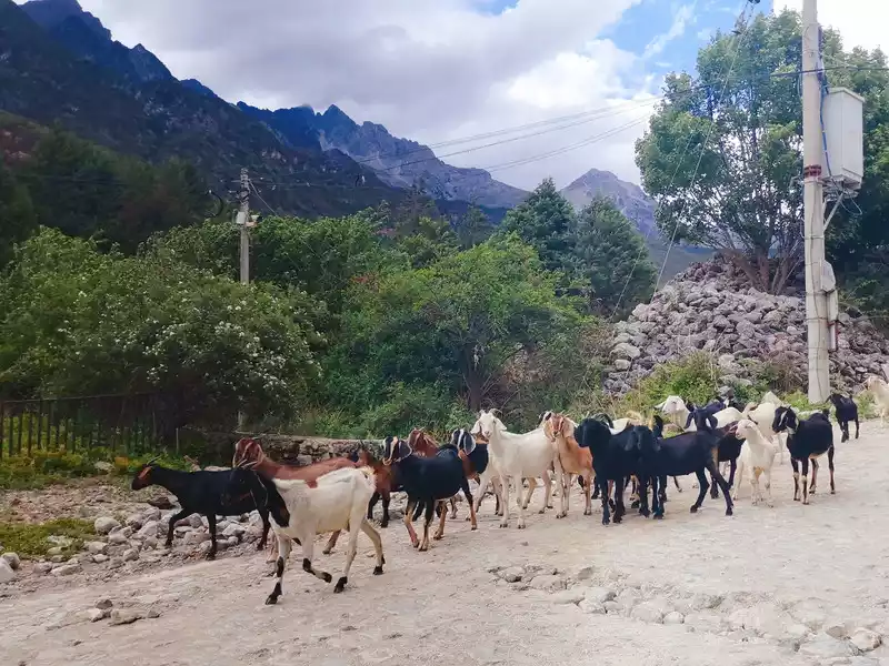 Yuhu Village is a super beautiful ancient village of the Naxi people. We stayed in Yuhu Village on both the first and second days. It's the closest village to Jade Dragon Snow Mountain. It wasn't until after 4 p.m. when we returned from the mountain, so we decided to stroll around the village and the Jade Pillars to the Sky scenic area. Yuhu Village itself doesn't require an entrance fee, but Jade Pillars to the Sky is a paid attraction. Located southwest of the village at the foot of Jade Dragon Snow Mountain, it's just a few minutes' walk from our B&B. The entrance fee is 25 yuan, and there's a decent-sized parking lot in front. Due to time constraints, we only explored Yuhu Lake and the Upper and Lower Deep Pools. The scenery around the lake is breathtaking. The small wildflowers by the lake are vibrant and vibrant, plump sheep graze leisurely, and the cascading deep pools are filled with rainbow trout, brimming with life.