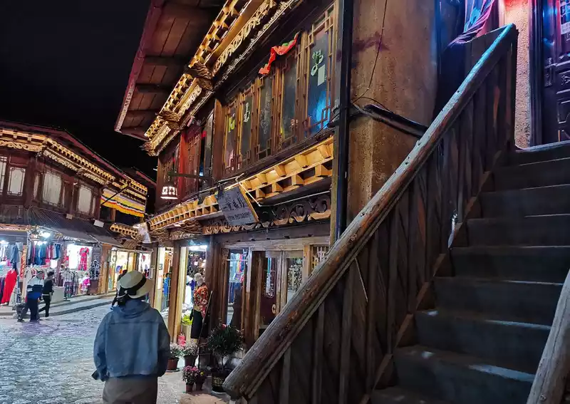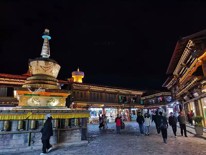 Guishan Park is the commanding height of Shangri-La City, and the viewing platform where the prayer wheel is located is the best place to view the whole picture of Shangri-La. After coming down from Guishan Park, we began to visit Dukezong Ancient Town. As June is not the peak tourist season, there were not many people in the ancient town in the evening. Only the Sifang Street Square was full of tourists dancing the cheerful Guozhuang dance under the guidance of enthusiastic Tibetans. We felt that this ancient town, which had suffered a fire in 2014, has now regained its former appearance and vitality.