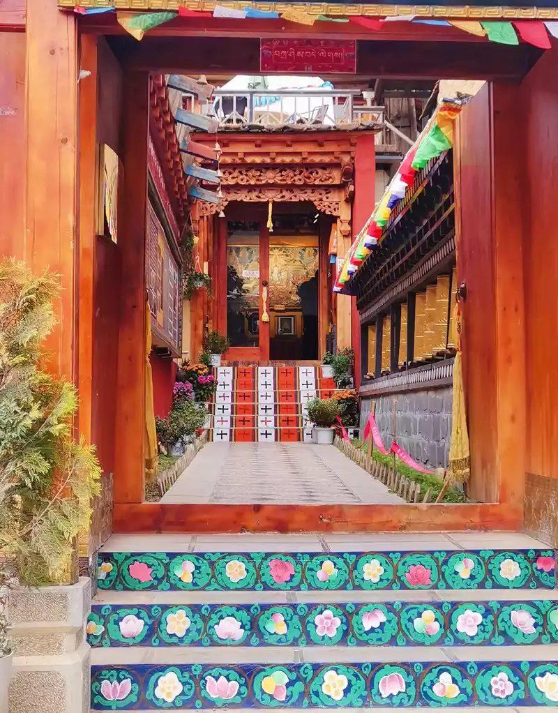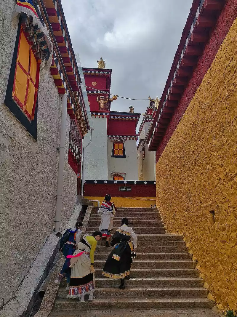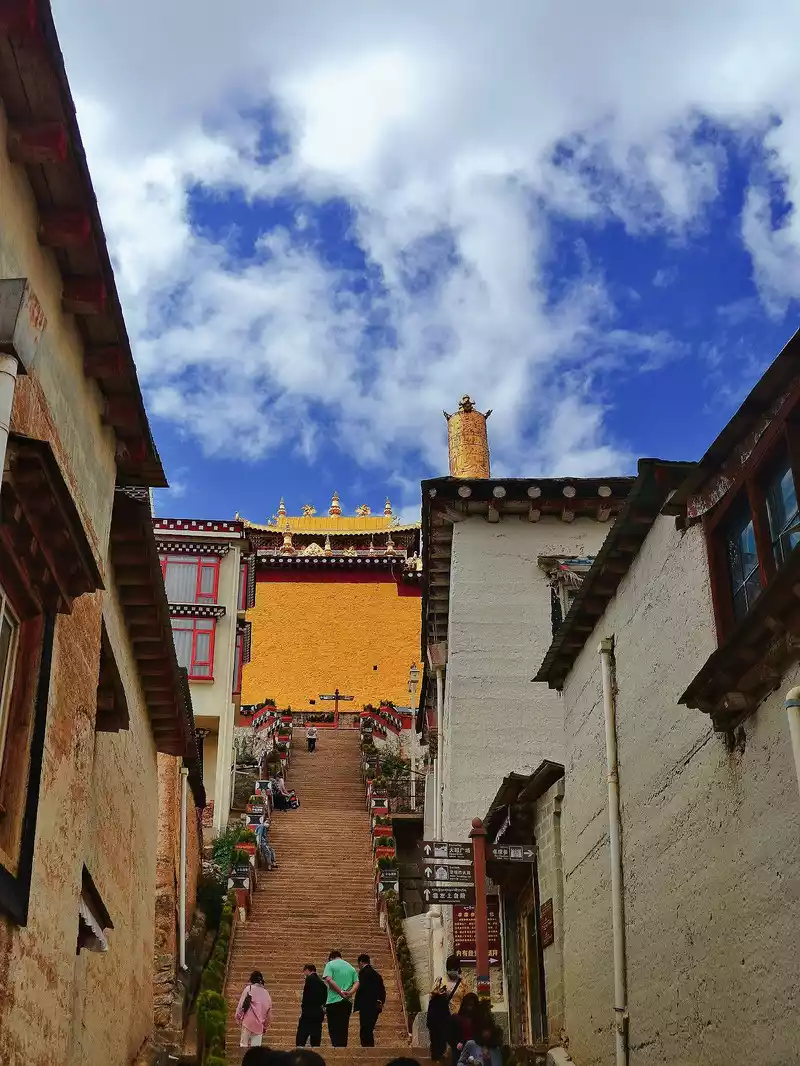 After entering the gate, you can go up to the main temple complex of Songzanlin Temple through this long staircase.