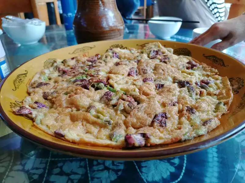 我们乘坐越野车从雨崩上村回到西当村已是下午快一点了,为了不耽误时间,我们决定中餐就在车上吃点各自的点心、零食,直到下午四点多过了香格里拉县城后,才在师傅的介绍下进了一处民居,也算中晚餐一起吃了吧。