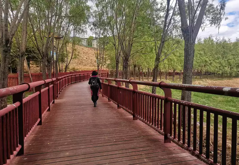 Opposite the Songzanlin Monastery is Lamu Yangcuo Lake. There is a plank road around the lake. The plank road directly opposite the Songzanlin Monastery (with a viewing platform and signs) is the best place to take panoramic views and reflections, so we chose to take advantage of the clear weather to go around the lake first.